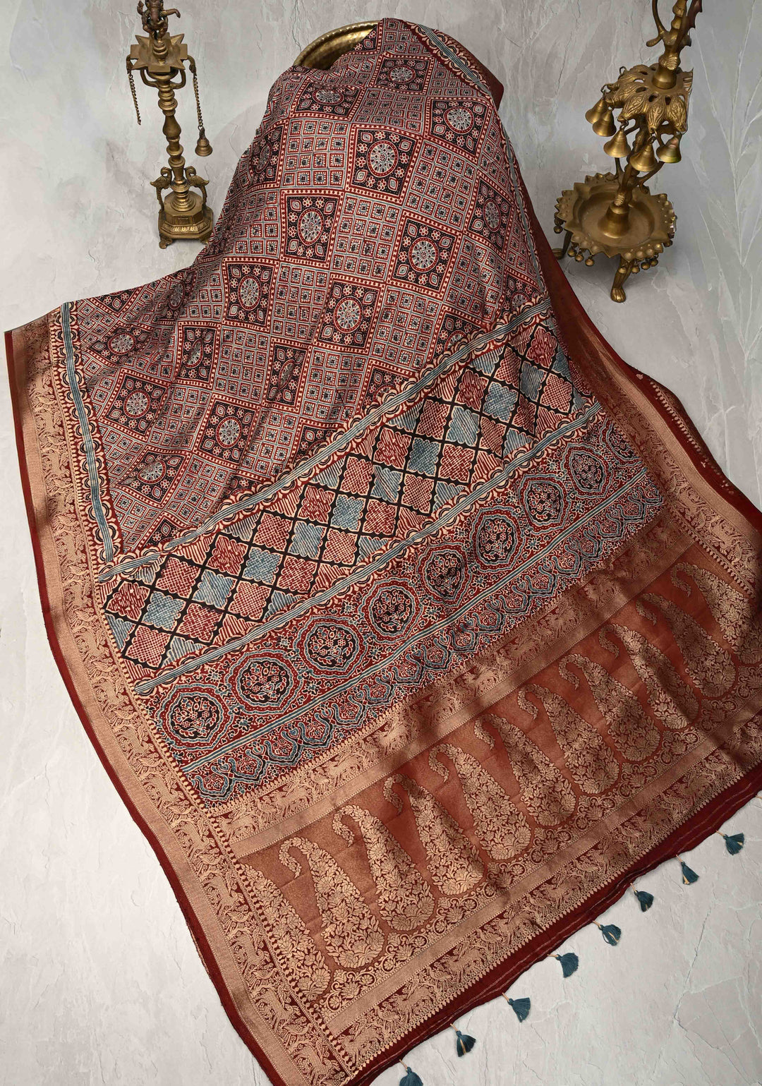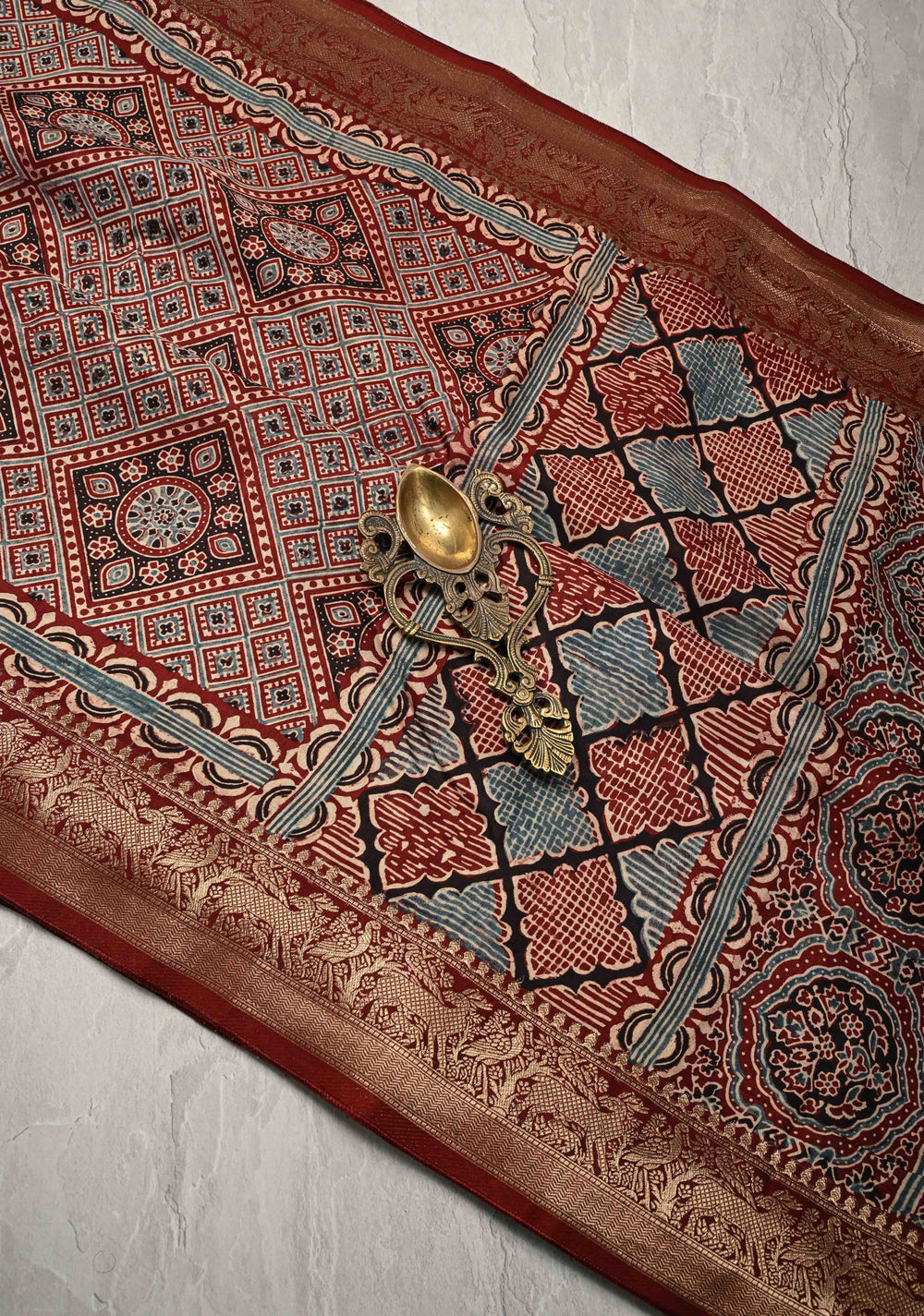 1. Bandhani & Patola Maroon Saree – A Celebration of Culture and Colors