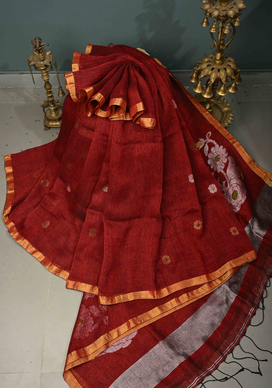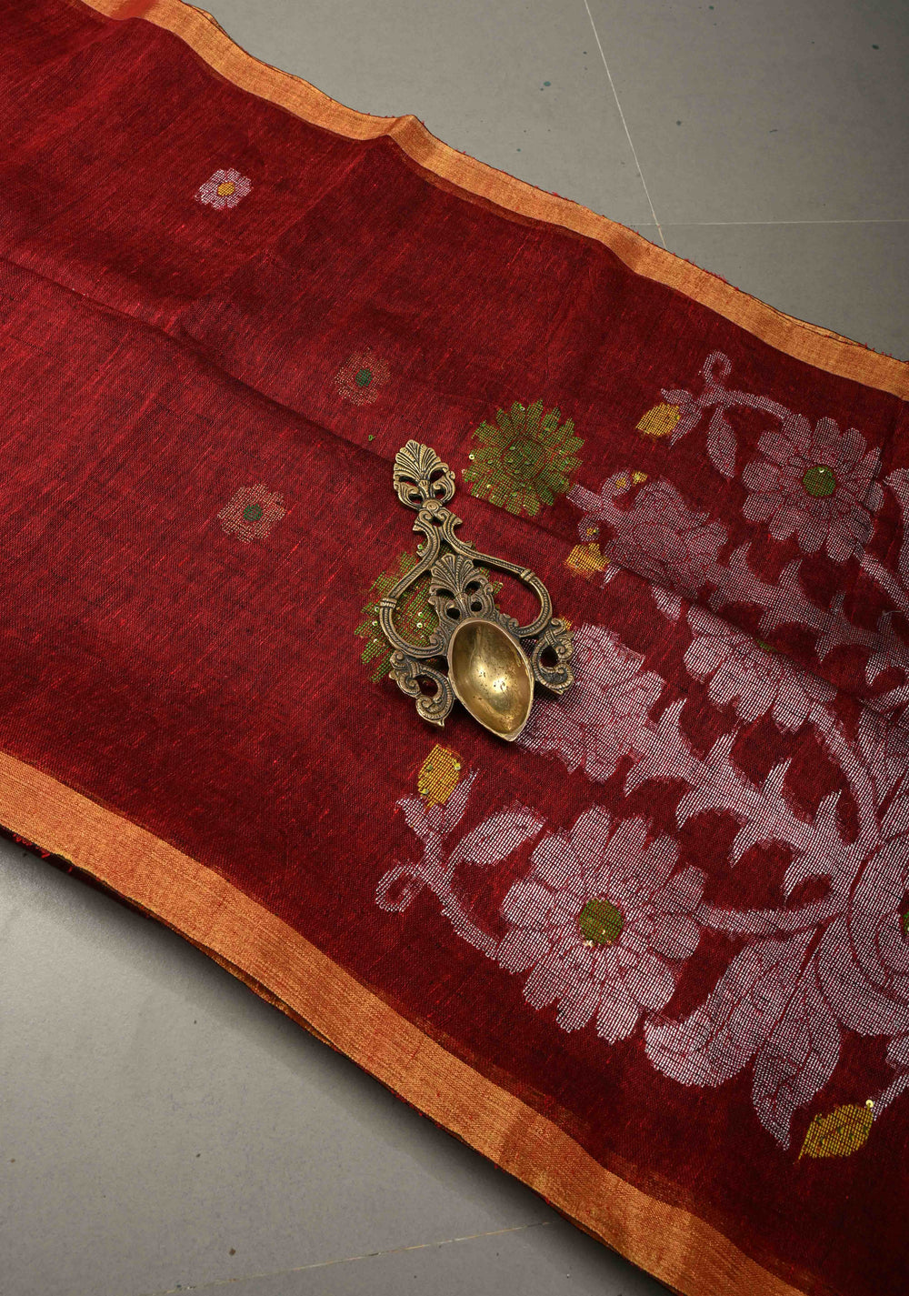 Cotton & Linen Maroon Saree – Effortless Comfort with a Touch of Grace