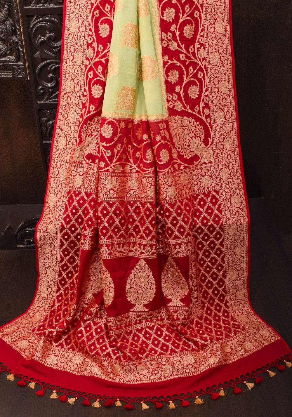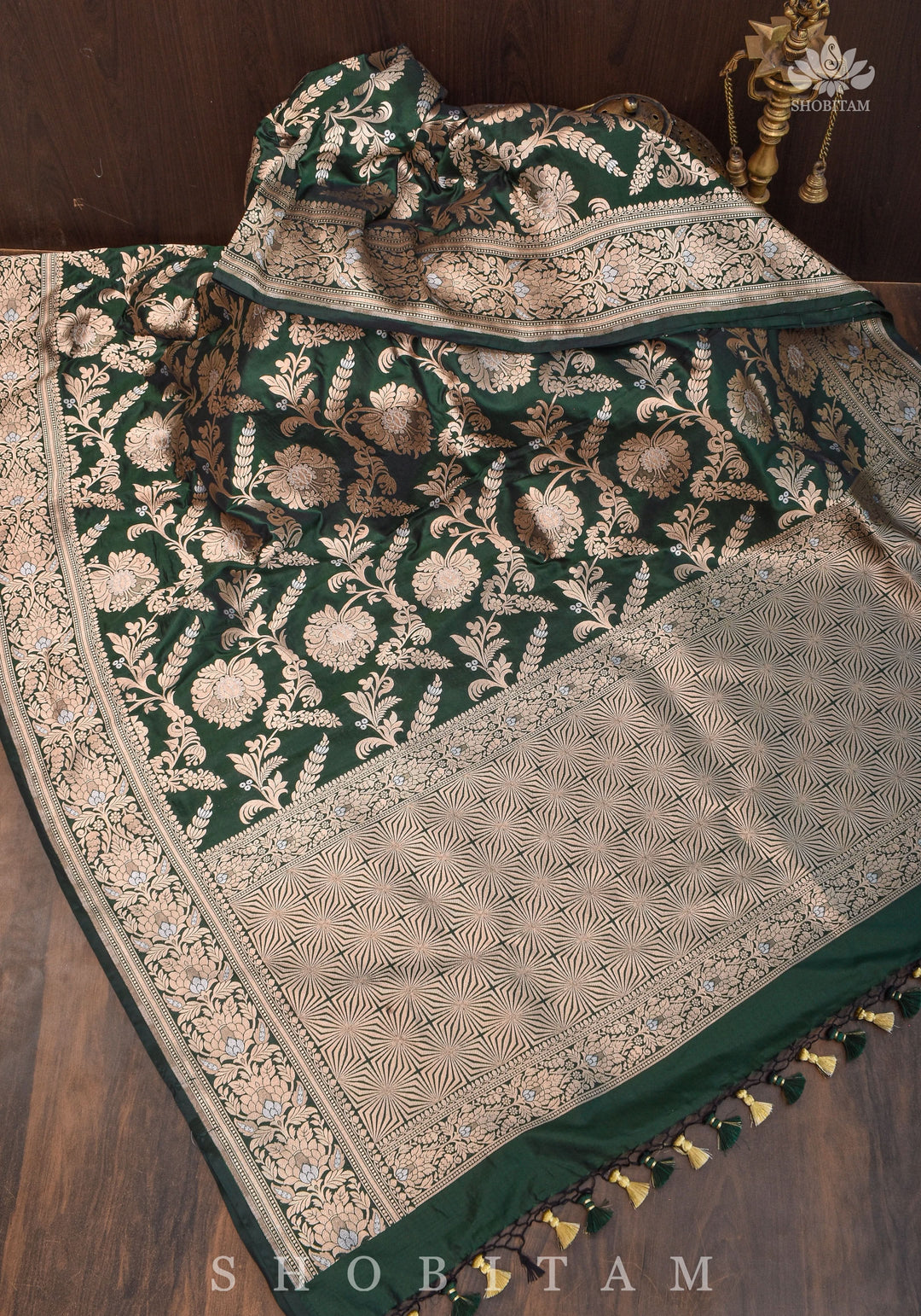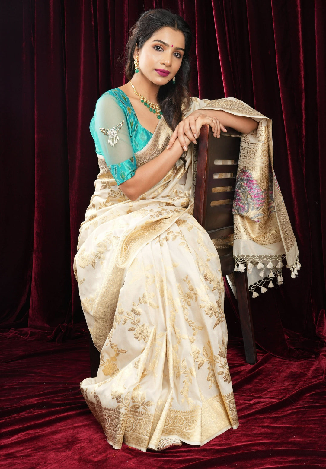 Zari Butta: Exquisite Banarasi Zari Butta Saree – Timeless Elegance with Intricate Handwoven Gold Motifs, Perfect for Weddings and Festive Celebrations. Shop Luxury at Its Finest.