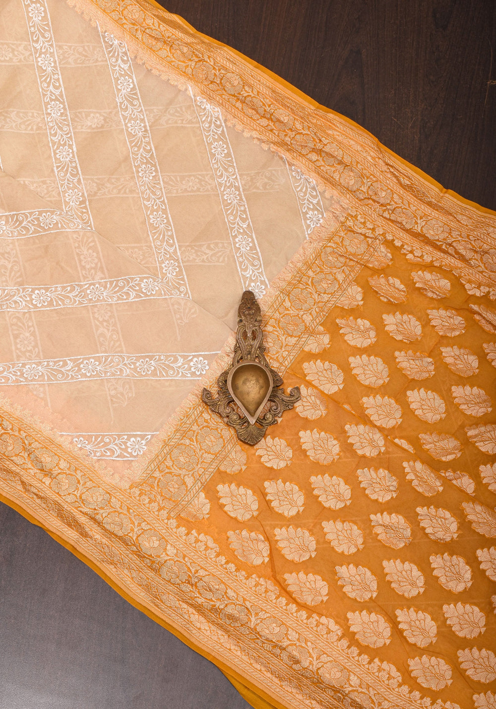 In this complex art form, various techniques such as Tanchoi, Mashru, Meenakari, Rangkaat, Brocade, Kadwa, Fekua/Cut Work, and Tissue are employed to create exquisite fabrics.