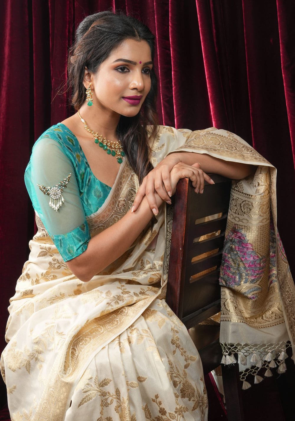 The person who wears a Banarasi saree not only looks more graceful and beautiful, but it also tells a story. Passed down as heirlooms and symbols of elegance, how you style your saree is a reflection of your individuality. Whether you prefer traditional or contemporary styles, or even a fusion of the two, a Banarasi saree can be draped to express your unique identity.