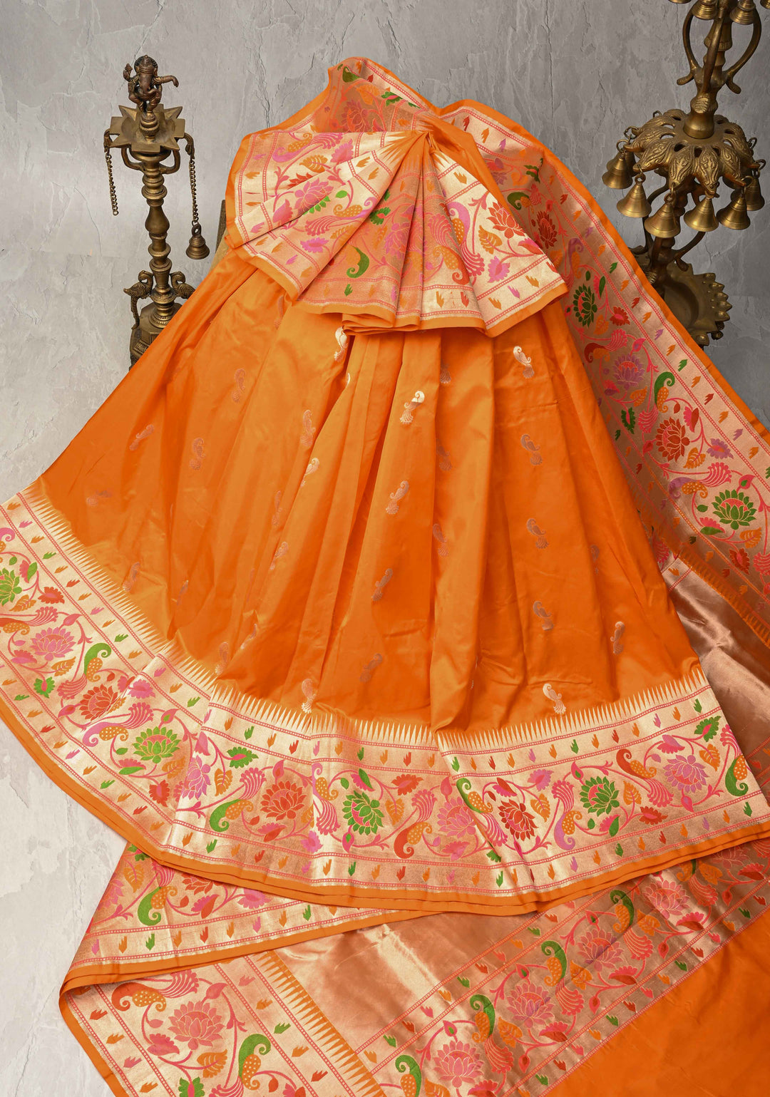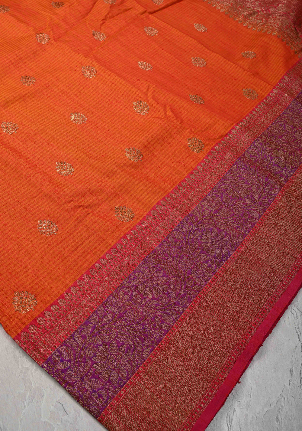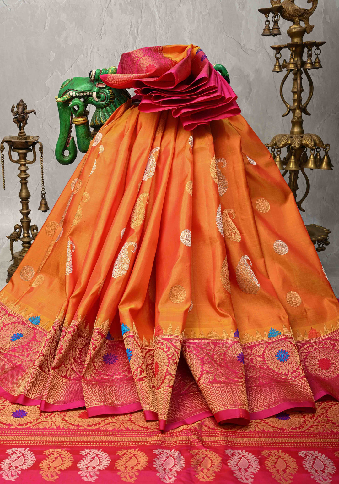 Banarasi silk orange sarees with intricate zari work are perfect for weddings and festivals.
