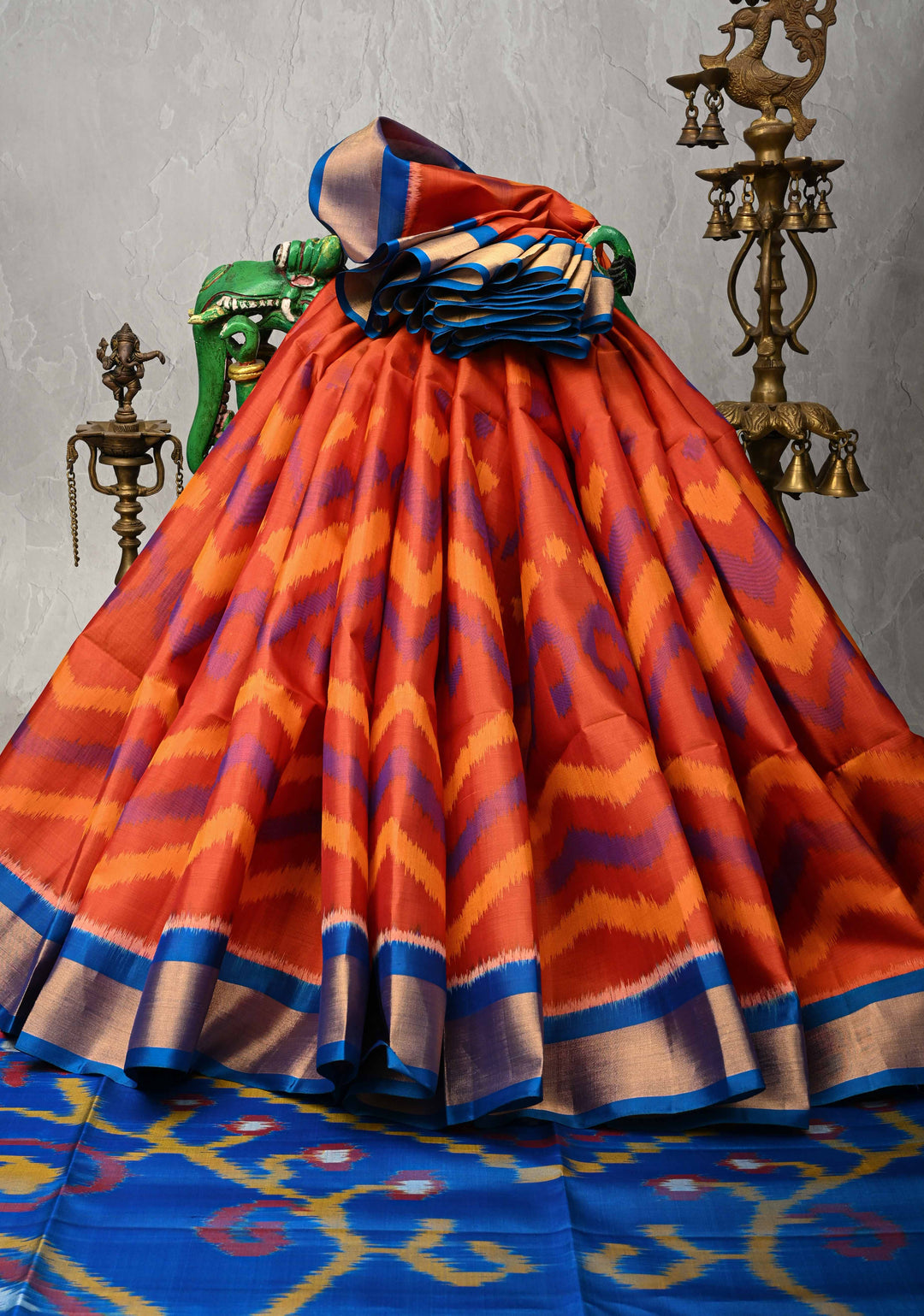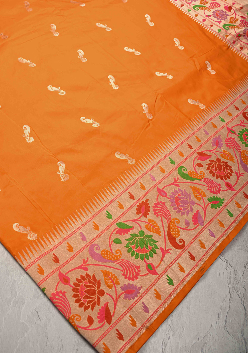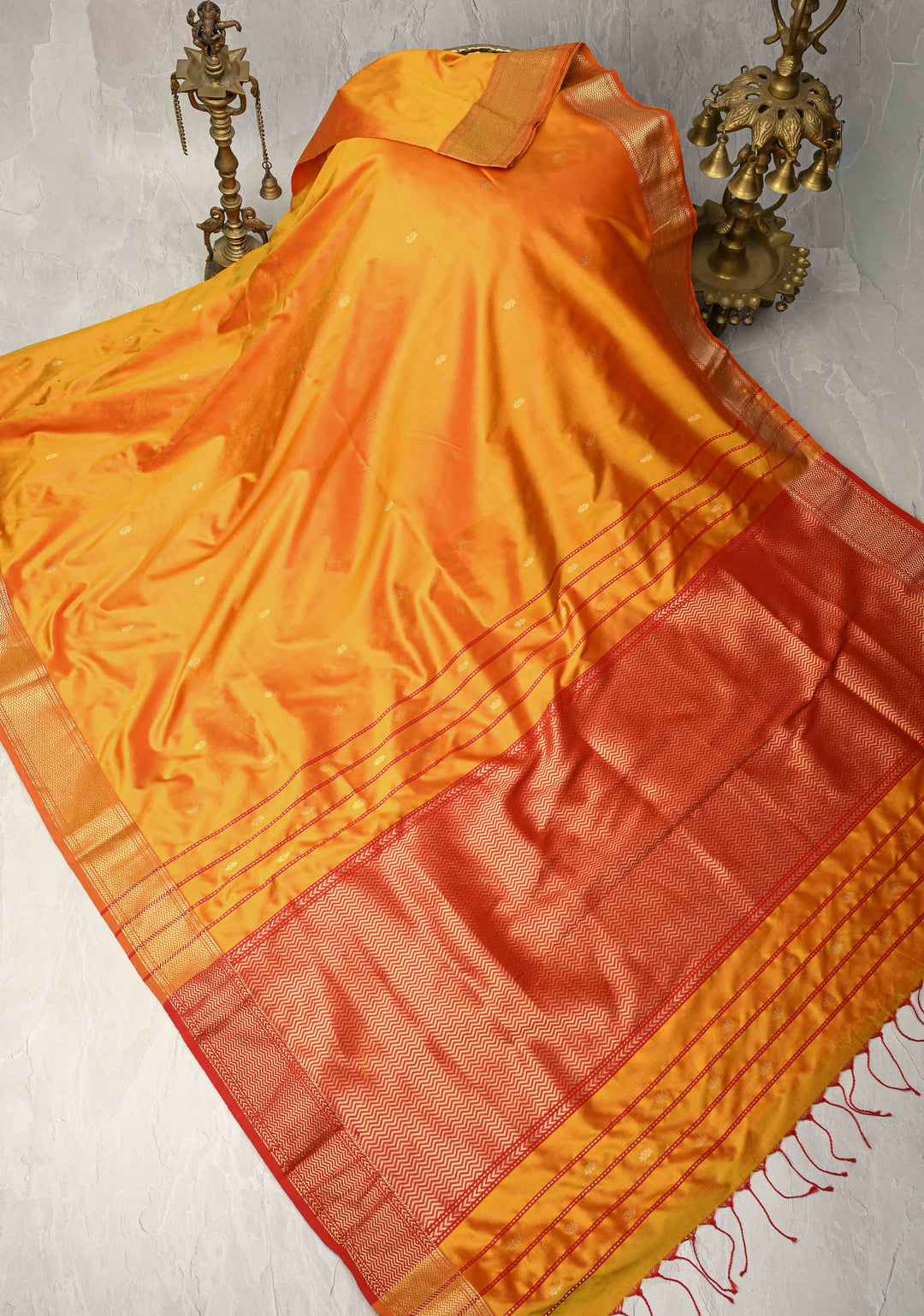Banarasi silk orange sarees with intricate zari work are perfect for weddings and festivals.