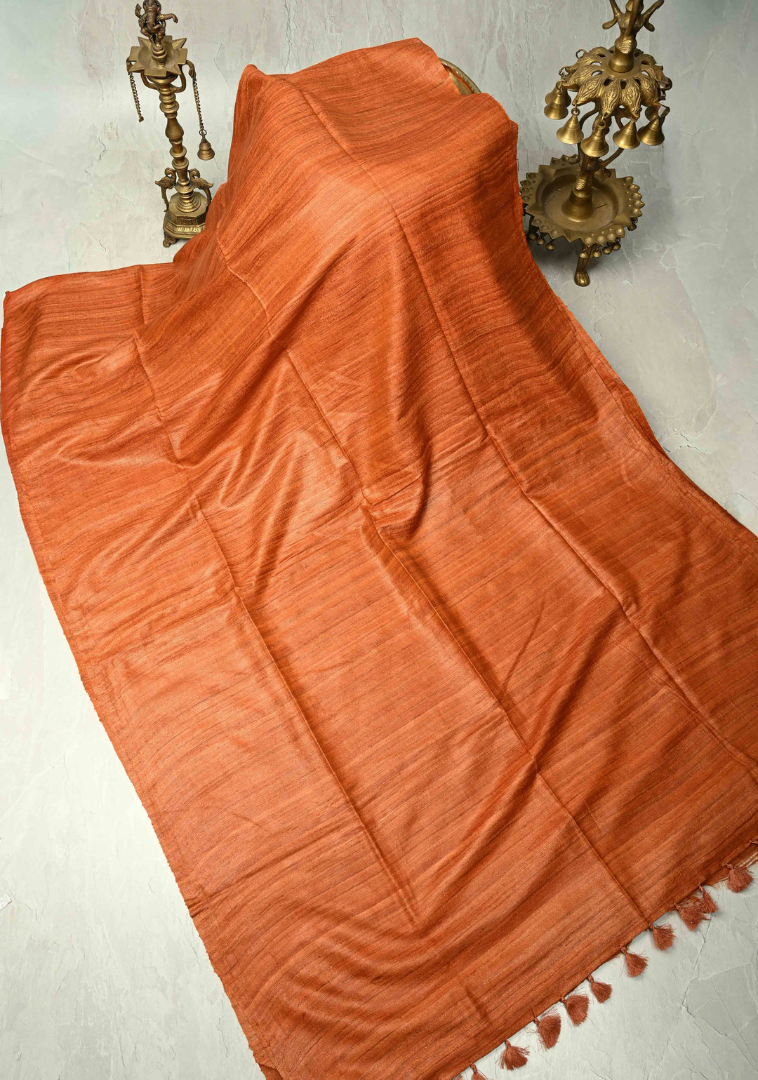 A lightweight orange saree in cotton or linen is perfect for everyday wear.