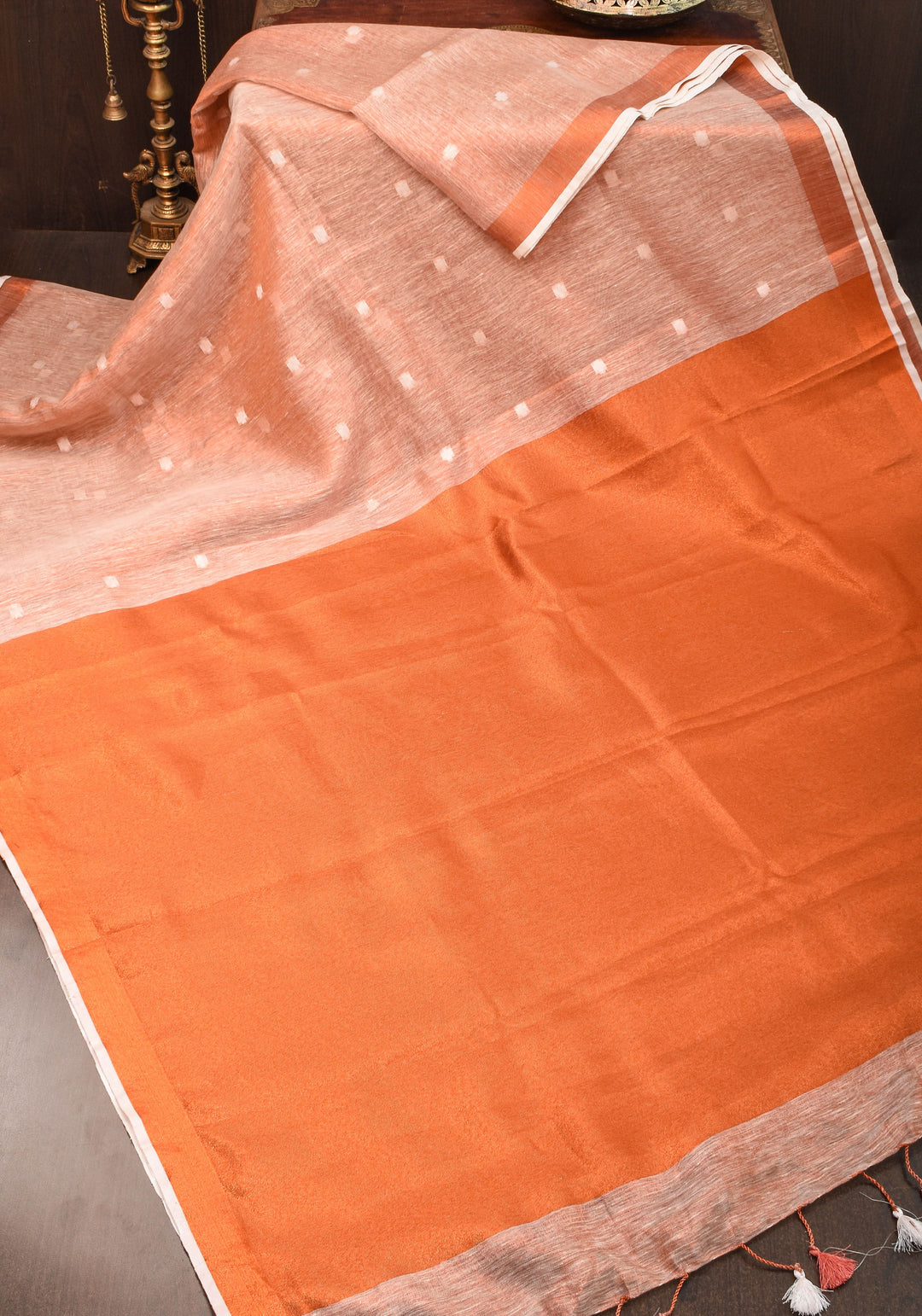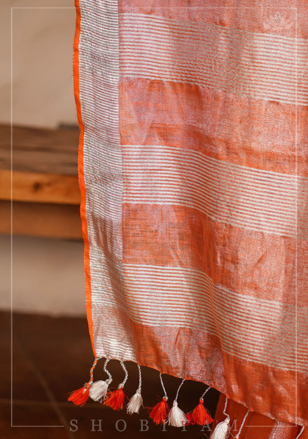 A lightweight orange saree in cotton or linen is perfect for everyday wear.