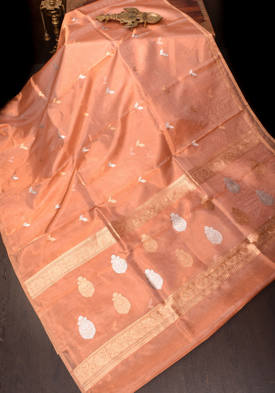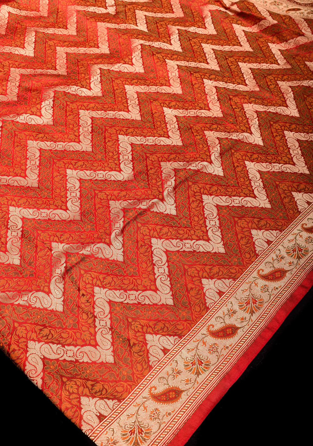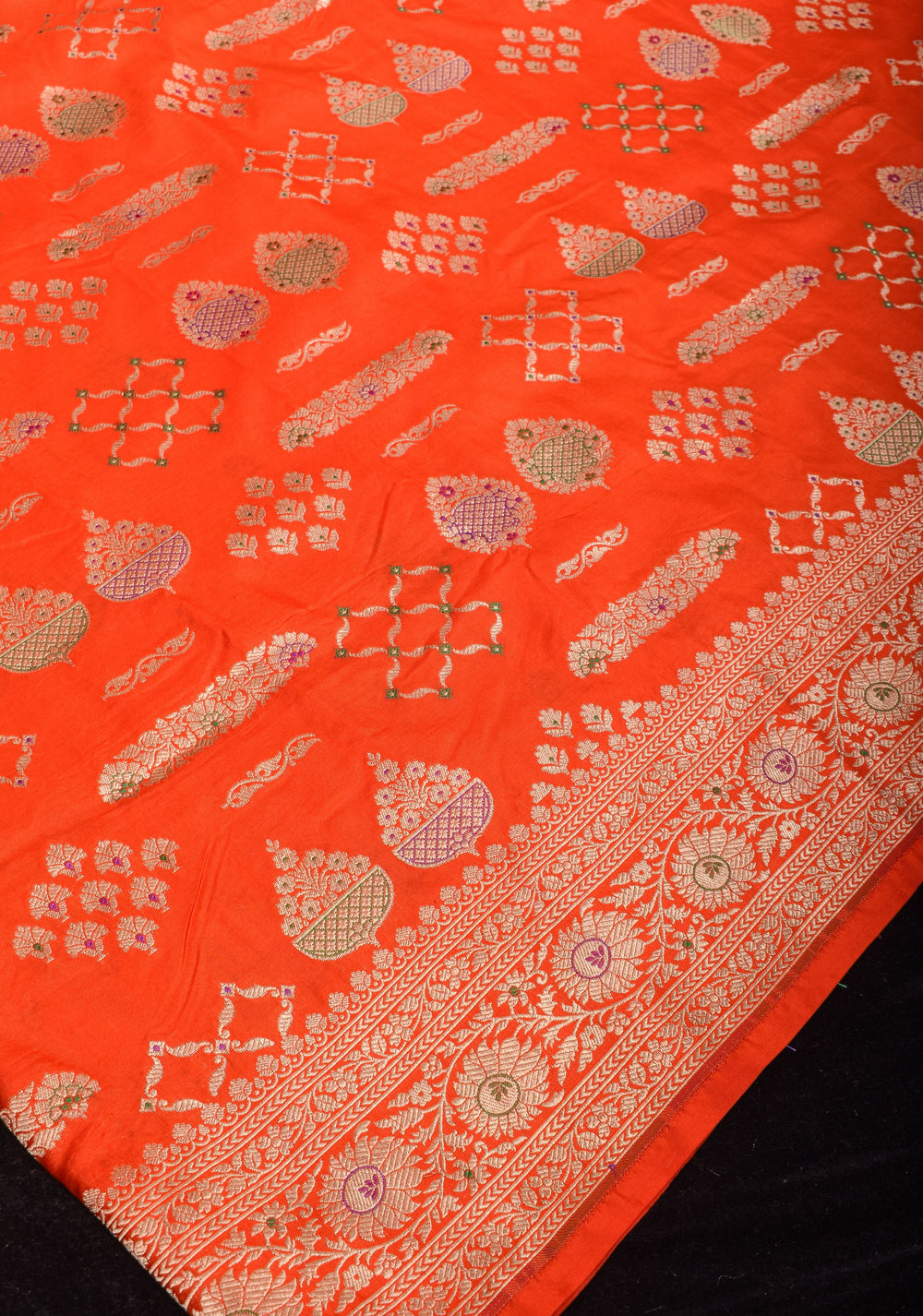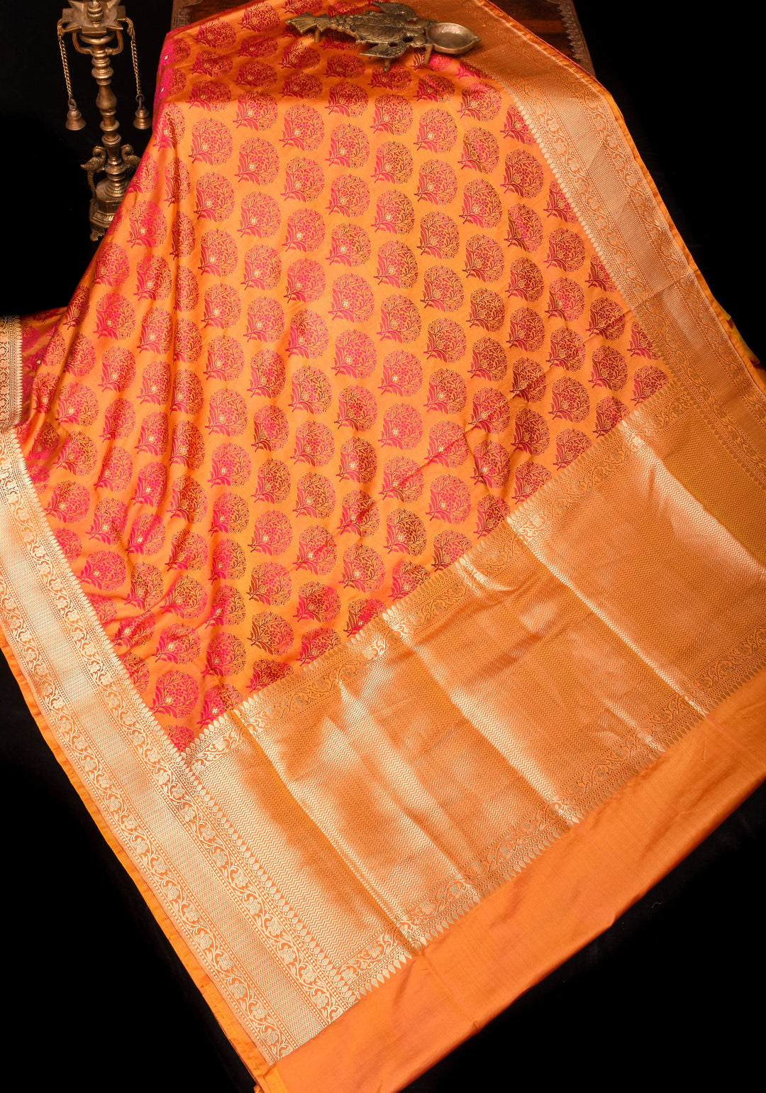 Banarasi silk orange sarees with intricate zari work are perfect for weddings and festivals.
