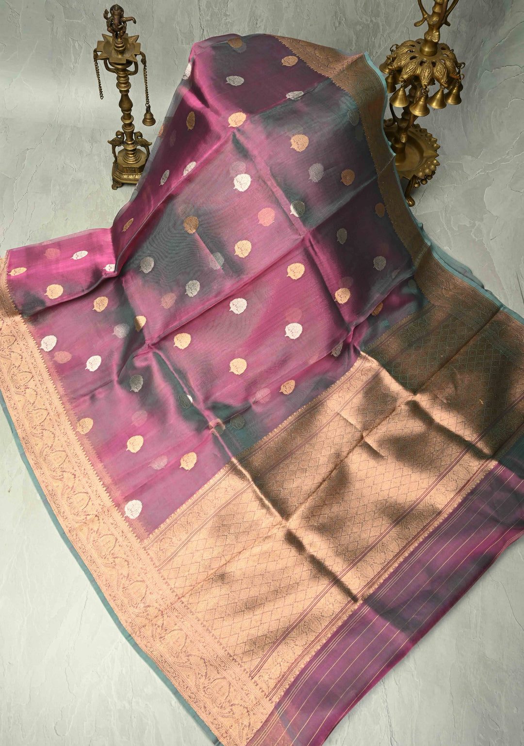 Organza fabric traces its roots to Persia, eventually spreading to China and then Europe. Made from spun silk, it was synonymous with luxury and opulence. Over the centuries, organza found its way into Indian saree craftsmanship, combining traditional weaves with this luxurious material.
