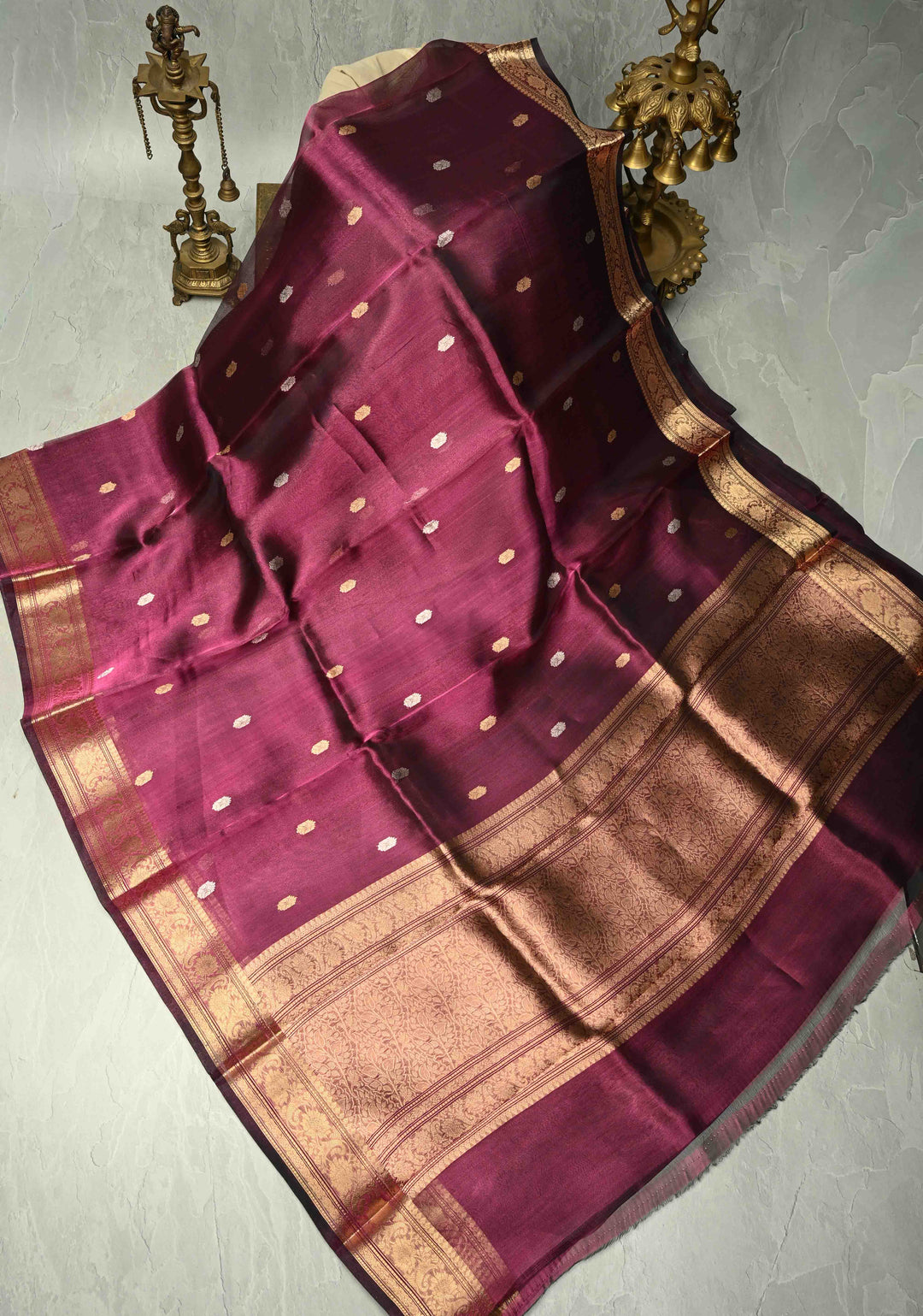 With intricate zari work and gold/silver patterns, Banarasi organza sarees exude a royal charm. They're a top pick for traditional Indian ceremonies.