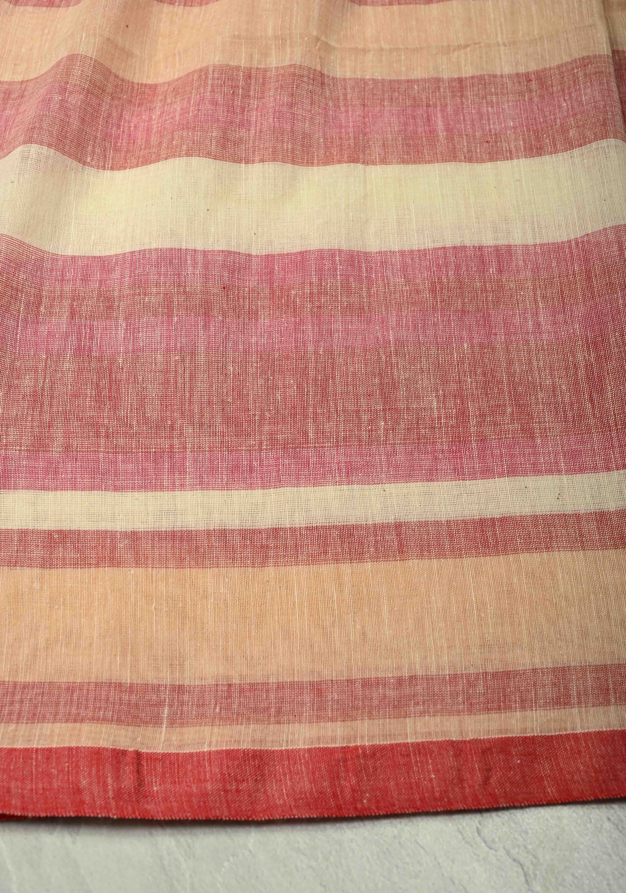 This Beige-Pink Bengal Cotton Saree captures effortless elegance with its soft texture and refined color harmony. Handwoven from lightweight Bengal cotton, it features a soothing beige body complemented by a delicate pink border that adds a graceful touch. Long handmade tassels at the pallu enhance its traditional charm. Perfect for everyday wear or casual occasions, this saree offers breathable comfort and timeless appeal with a hint of artisanal beauty.
