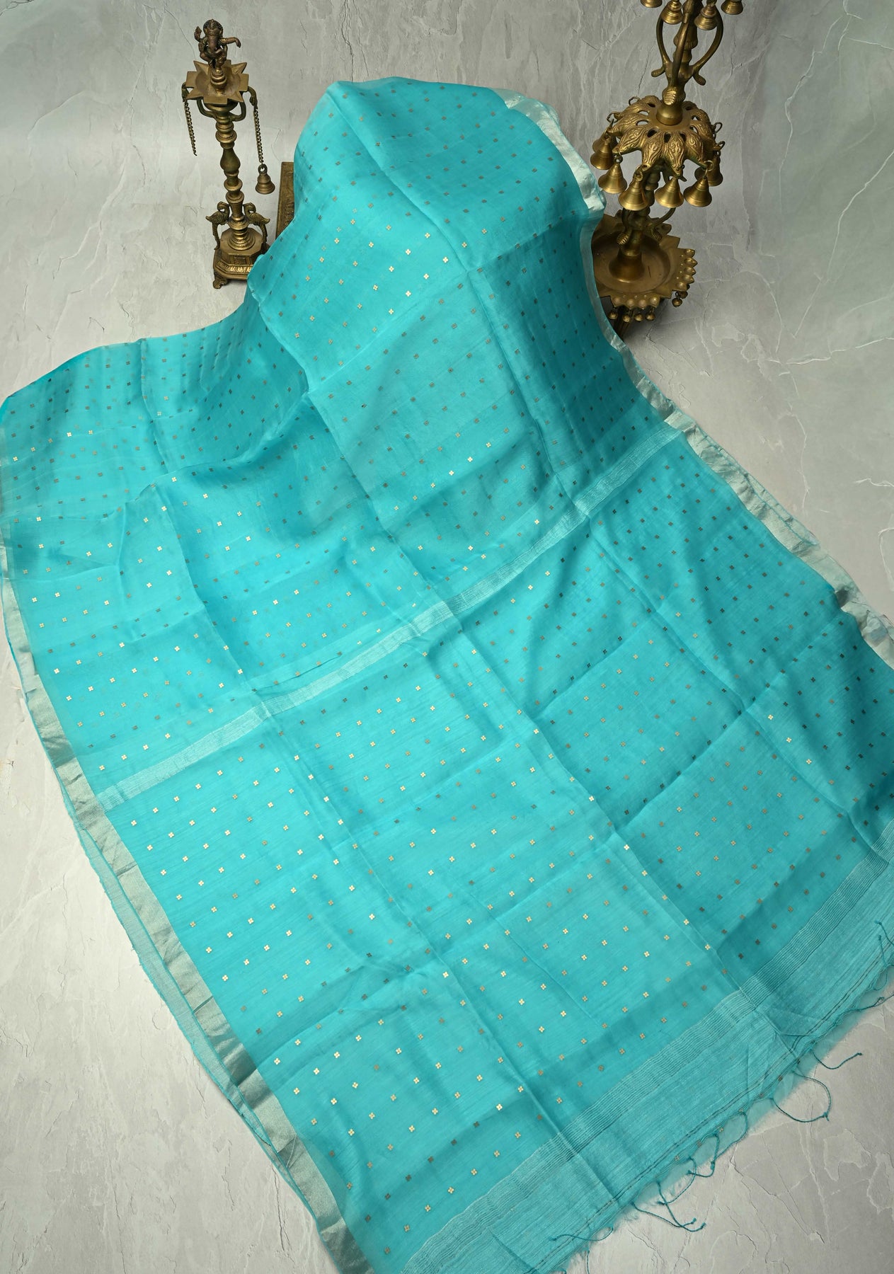 Radiate effortless elegance with this Aqua Matka Muslin Silk Saree, a perfect balance of subtle shimmer and timeless sophistication. Expertly woven from Matka Muslin Silk, this saree features delicate pocket sequin work that adds a gentle sparkle without overpowering its soft, graceful drape. The minimal zari border enhances the saree’s understated charm, making it ideal for festive celebrations, elegant soirées, or daytime events.