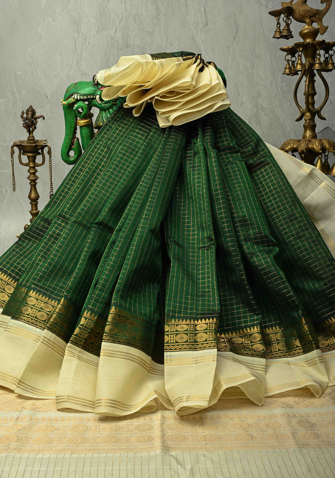 Chanderi sarees are lightweight and sheer, making them perfect for hot summer days. These sarees are woven with a mix of silk and cotton, and they feature delicate motifs inspired by nature and traditional patterns.