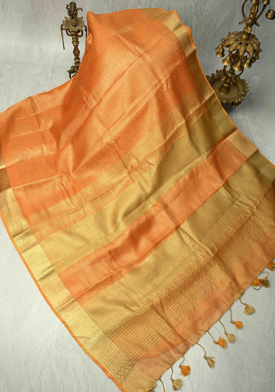 Orange Tissue Linen Saree with Zari Border