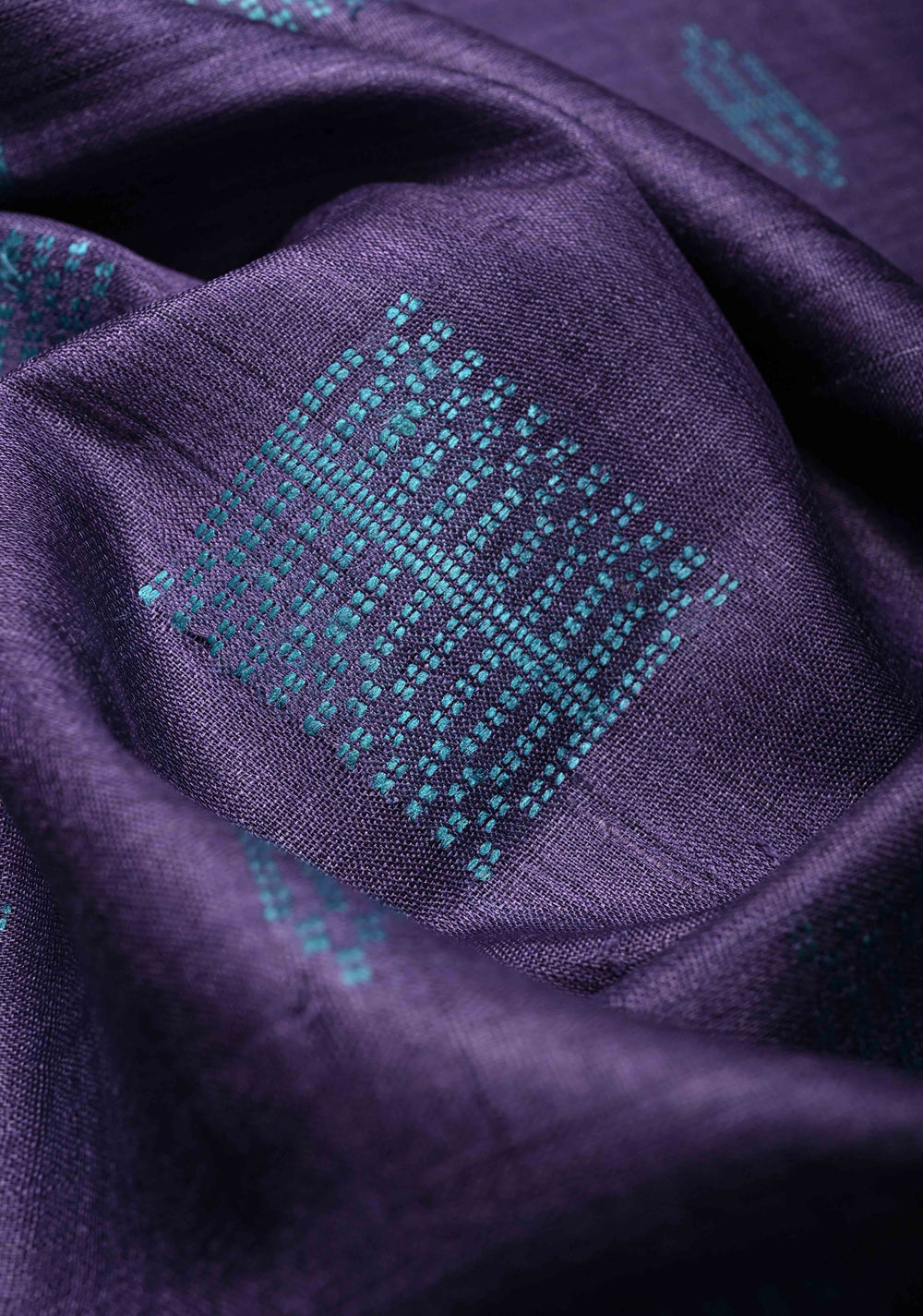 Purple Banarasi Tussar Saree with Thread Buttas and Border | SILK MARK CERTIFIED