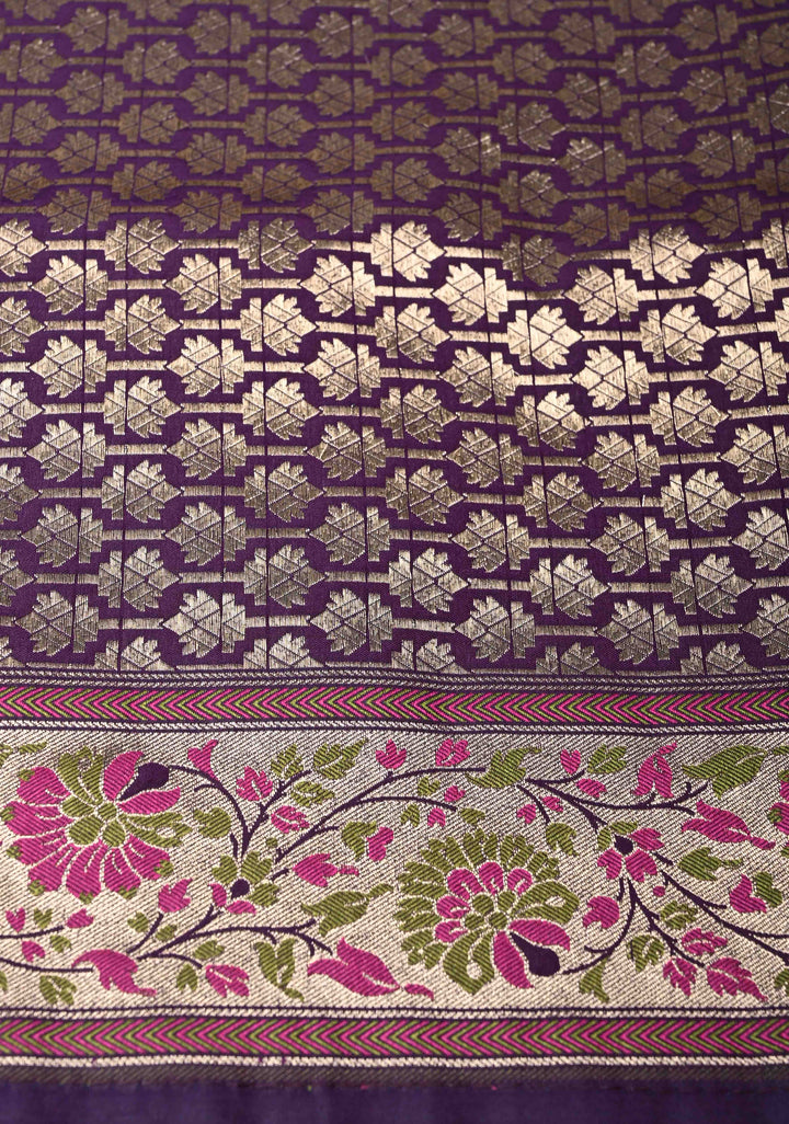 This stunning Jamuni purple semi-silk saree is a celebration of timeless tradition and refined elegance. Adorned with rich Meenakari brocade work, the saree showcases detailed craftsmanship with vibrant, multicolored motifs woven into the fabric. The luxurious texture of the semi-silk drapes beautifully, while the shimmering zari border adds a regal touch. Perfect for festive gatherings, weddings, or traditional ceremonies, this saree effortlessly combines cultural heritage with modern grace, making it a standout piece in any ethnic wardrobe.