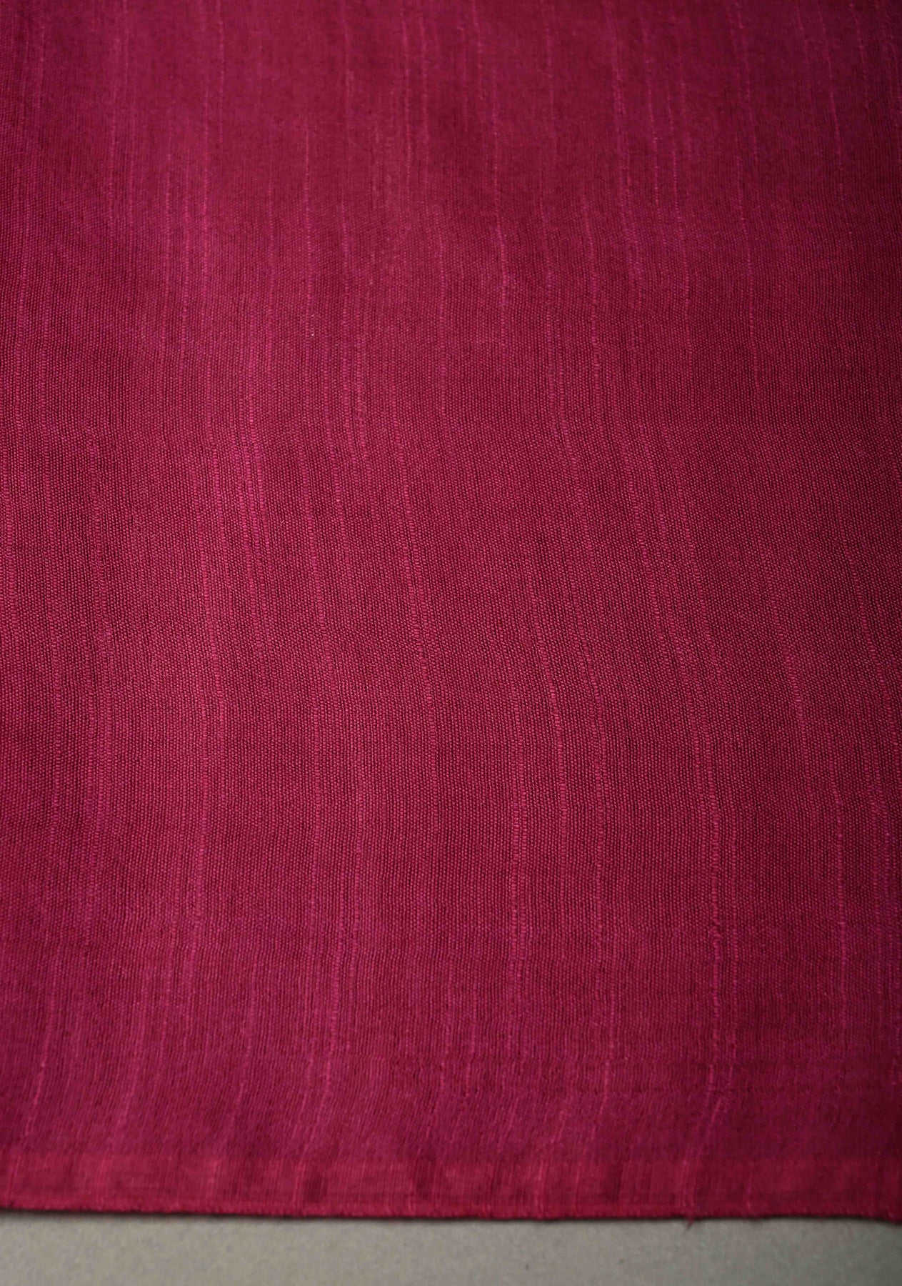 Step into modern elegance with this Magenta Borderless Semi Tussar Saree, designed for a refined contemporary look. Crafted in lightweight semi tussar silk, it features subtle thread stripes across the body, enhanced with delicate zari buttas that add understated. The borderless design lends a clean, modern silhouette, making this saree perfect for festive occasions, cultural gatherings, and stylish daytime celebrations.