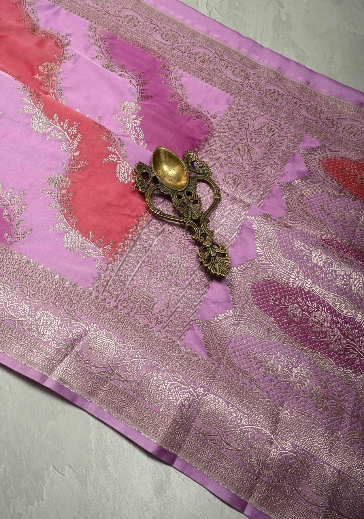 This Multicolor Banarasi Semi Mashru Silk Saree with Rangkaat Style and Zari Border is a vibrant masterpiece that celebrates the grandeur of Banarasi weaving. Crafted from semi mashru silk, it features the exquisite Rangkaat technique, where multiple colored silk threads are interwoven to create a mesmerizing play of hues across the saree. The rich texture and subtle sheen of mashru silk lend it a luxurious appeal, while the ornate zari border and pallu enhance its regal charm. Perfect for festive occasions, weddings, and cultural events, this saree is a true blend of color, craftsmanship, and elegance.
