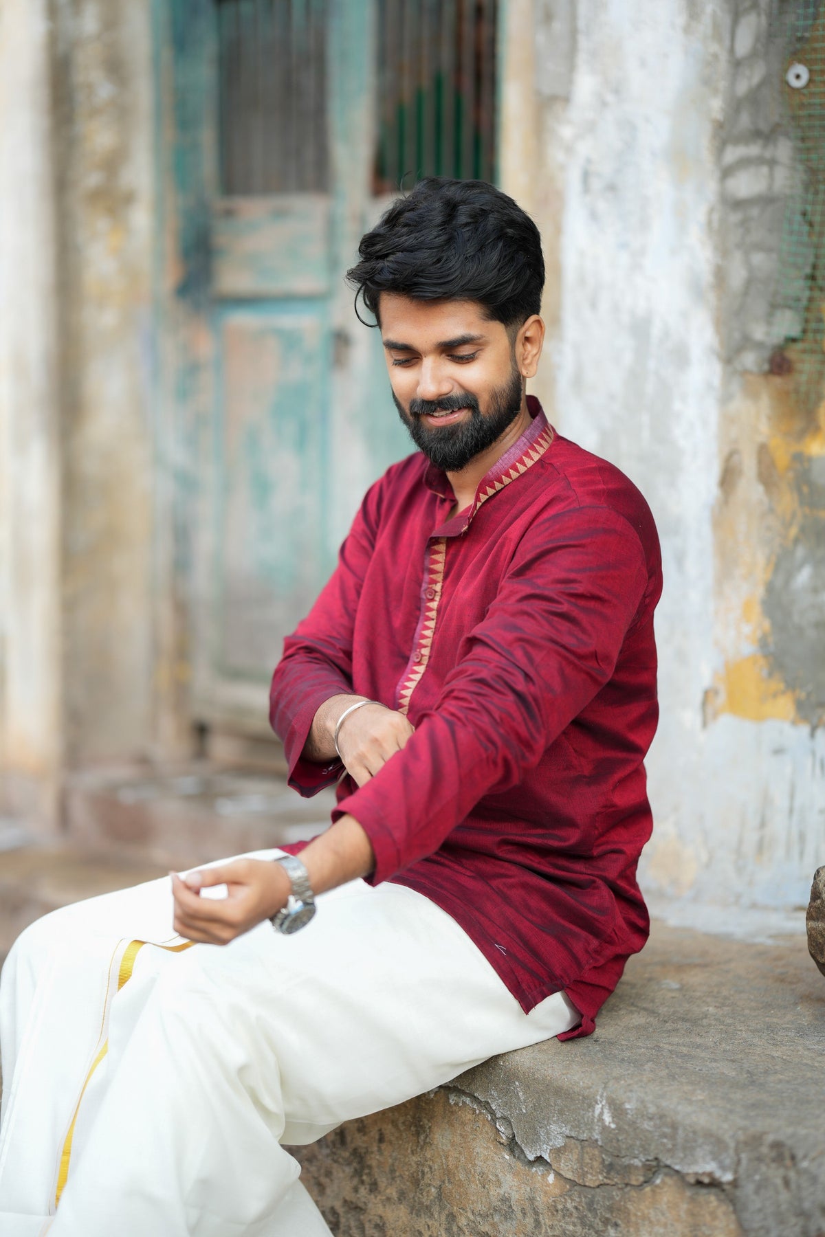 The Veer Maroon Shirt is a timeless festive essential for men, crafted in authentic Narayanpet cotton. With a refined mandarin collar, zari-inspired trims on the cuffs, and a relaxed fit, this shirt blends comfort with understated grandeur. Designed to pair effortlessly with veshtis or trousers, it makes the perfect choice for weddings, temple visits, and cultural gatherings. Handwoven and breathable, it brings heritage into every celebration."