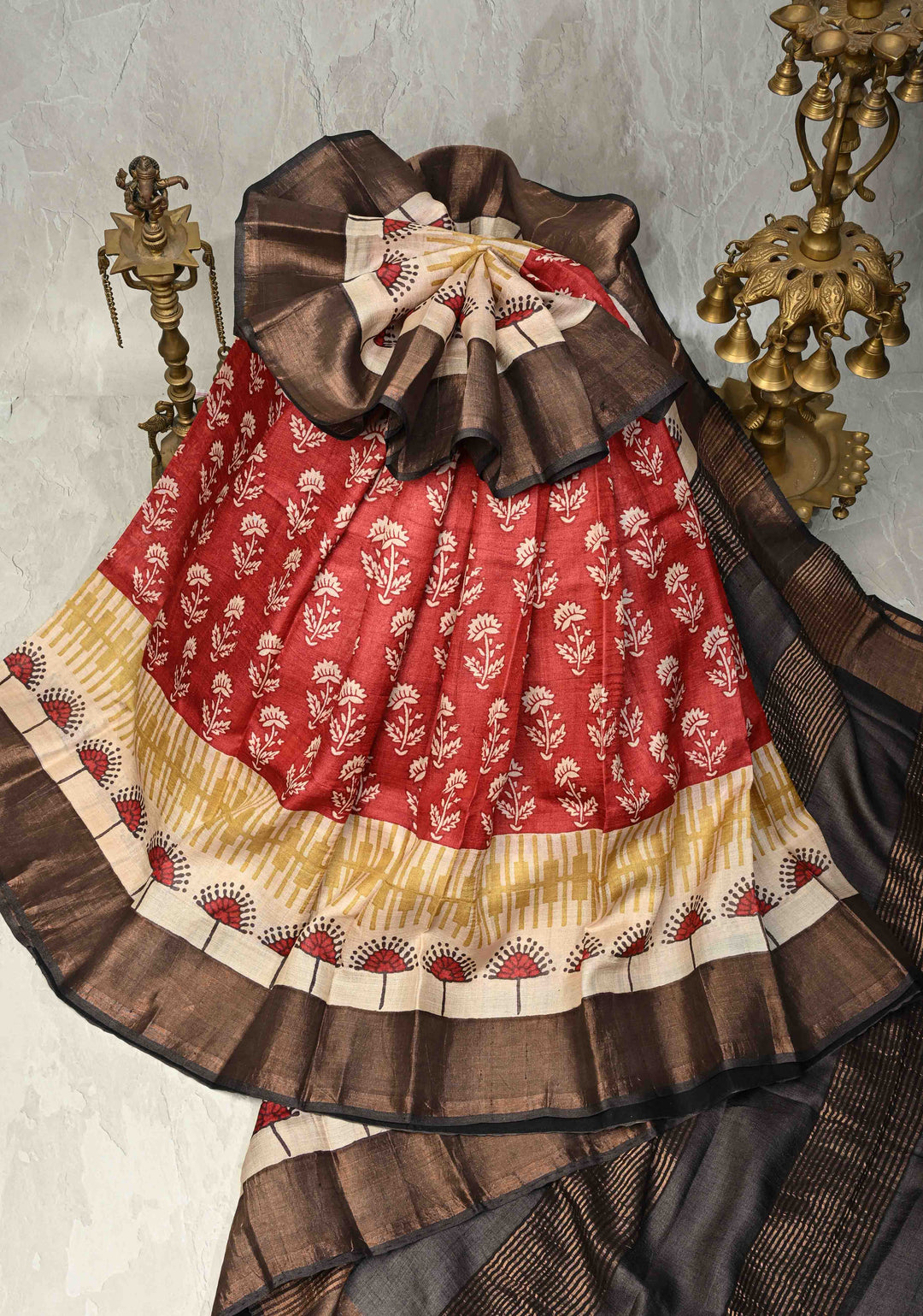 Ready To Wear Red Bhagalpuri Cotton Silk with woven zari & Ornate Pallu Wrap in 1 minute saree