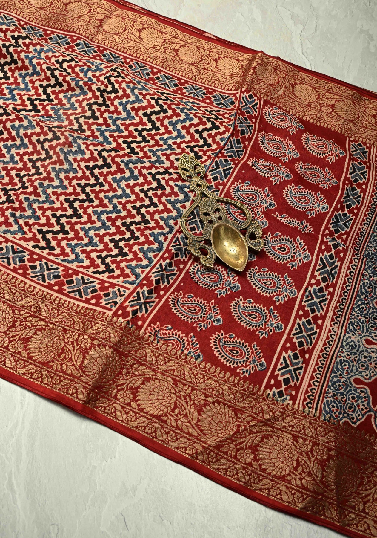 *Note: This is a handmade saree and there may be slight inconsistencies such as in it's weaving and print. These are characteristic of handmade products and attest to their originality and are not considered as defects.