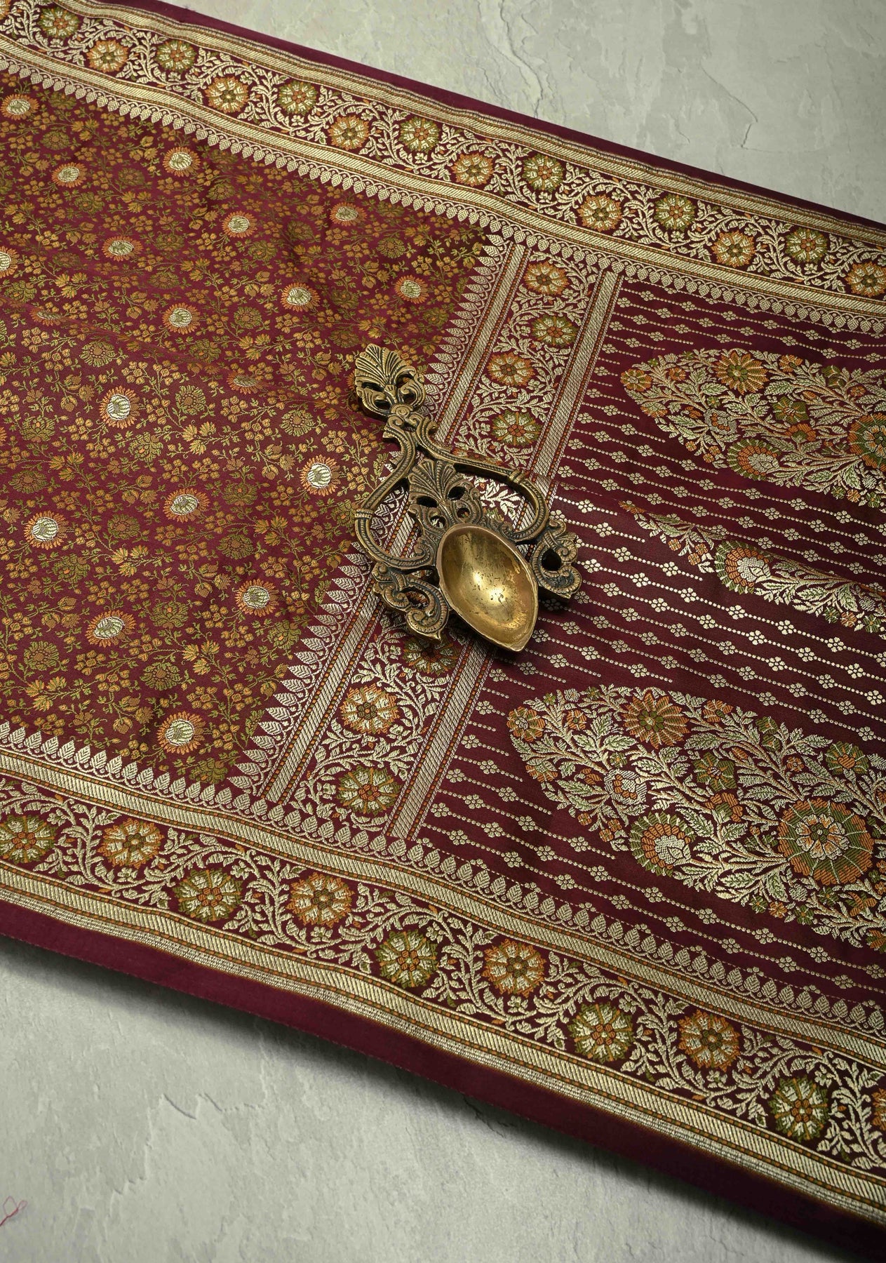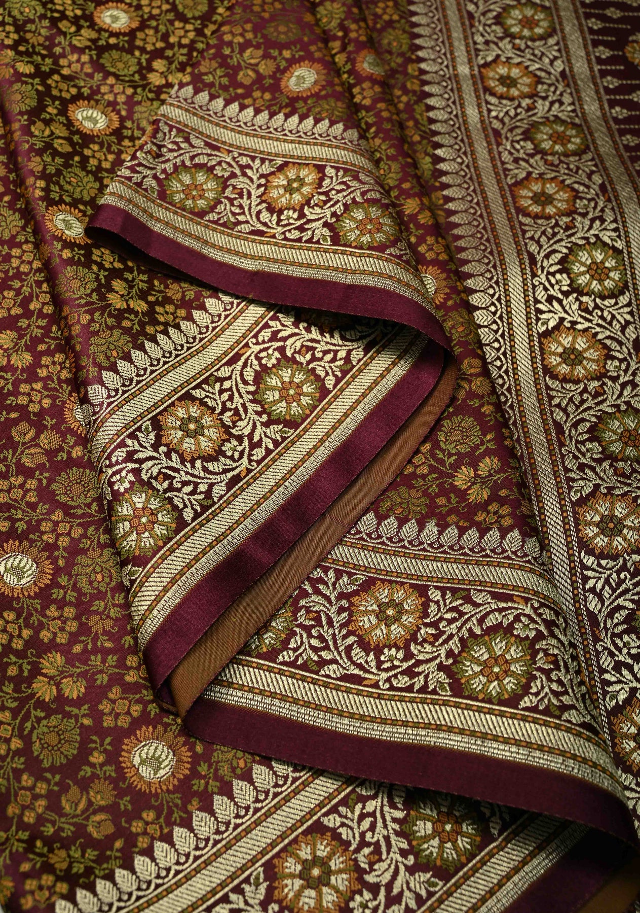 Radiate understated grandeur with this Brown Semi Tanchoi Banarasi Satin Silk Saree, intricately woven with a stunning Meenakari floral brocade jaal. The rich satin silk fabric offers a smooth texture and lustrous sheen. Perfect for weddings, festive celebrations, and cultural gatherings, this saree beautifully blends Banarasi heritage with timeless sophistication.