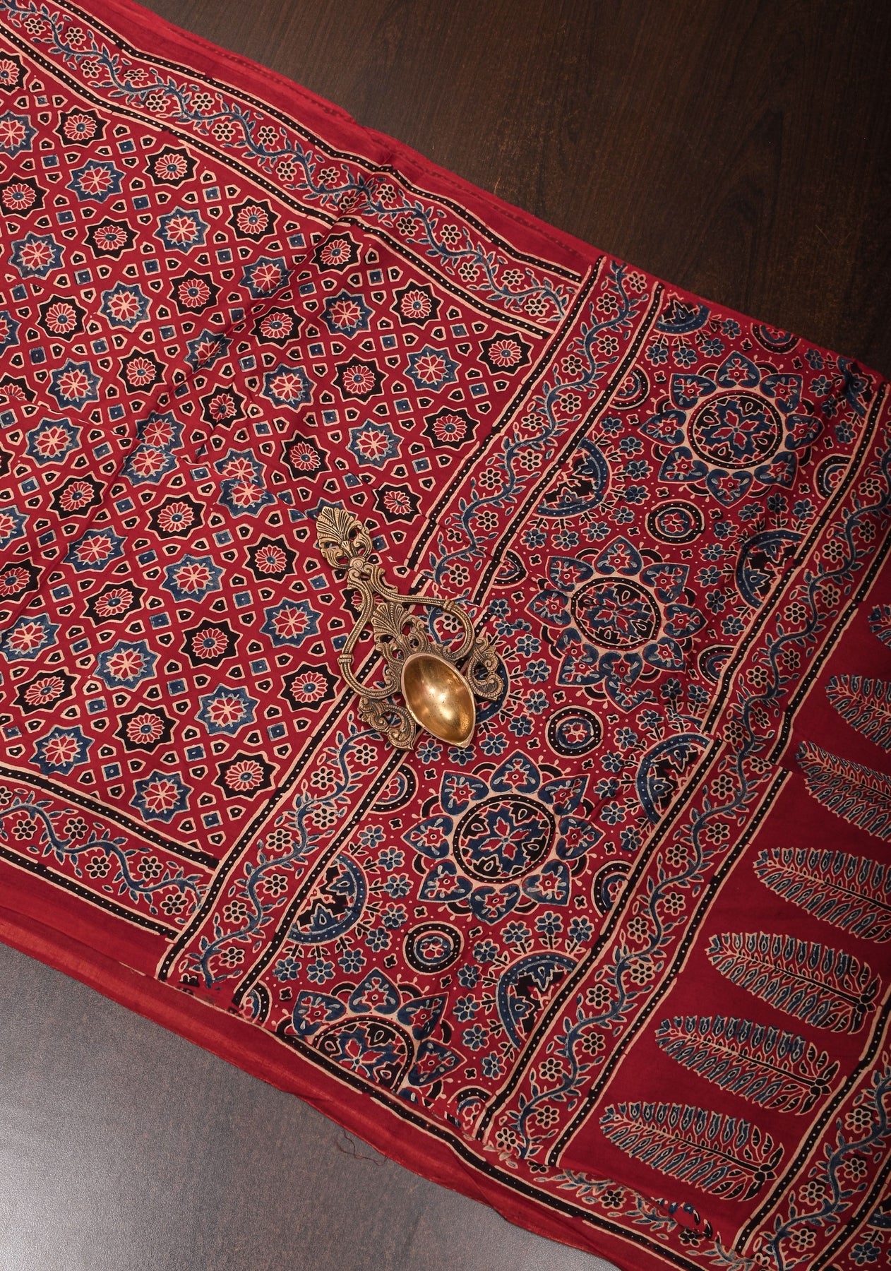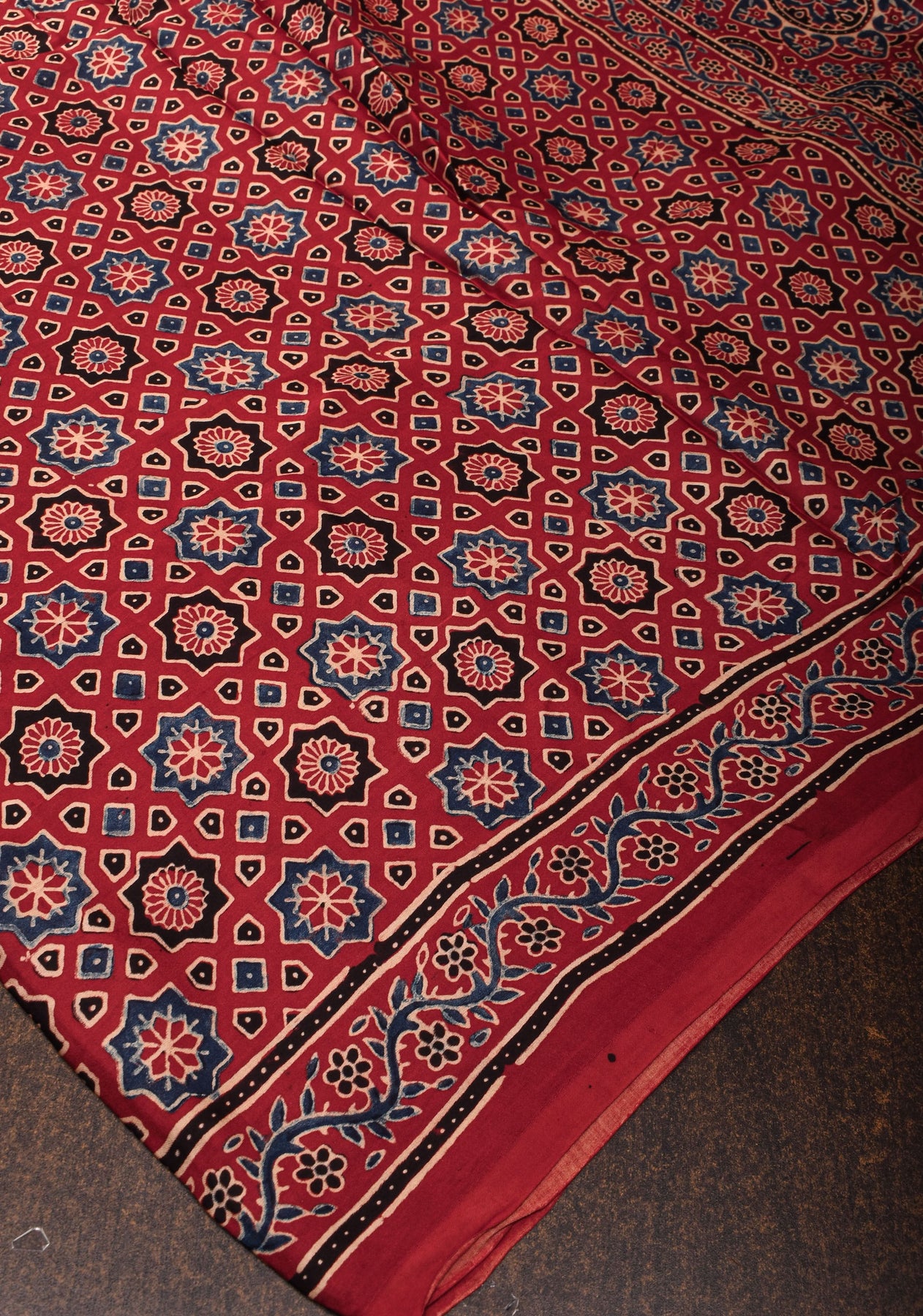 Red Ajrakh Hand Block Print on Modal Silk Saree