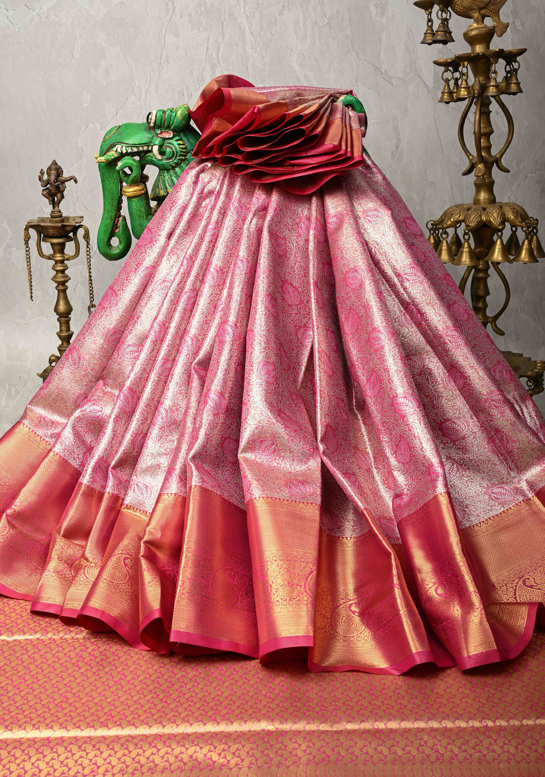 Rose Pink Kanjivaram Tissue Semi Silk Saree with Meenakari Brocade and Contrast Zari Border