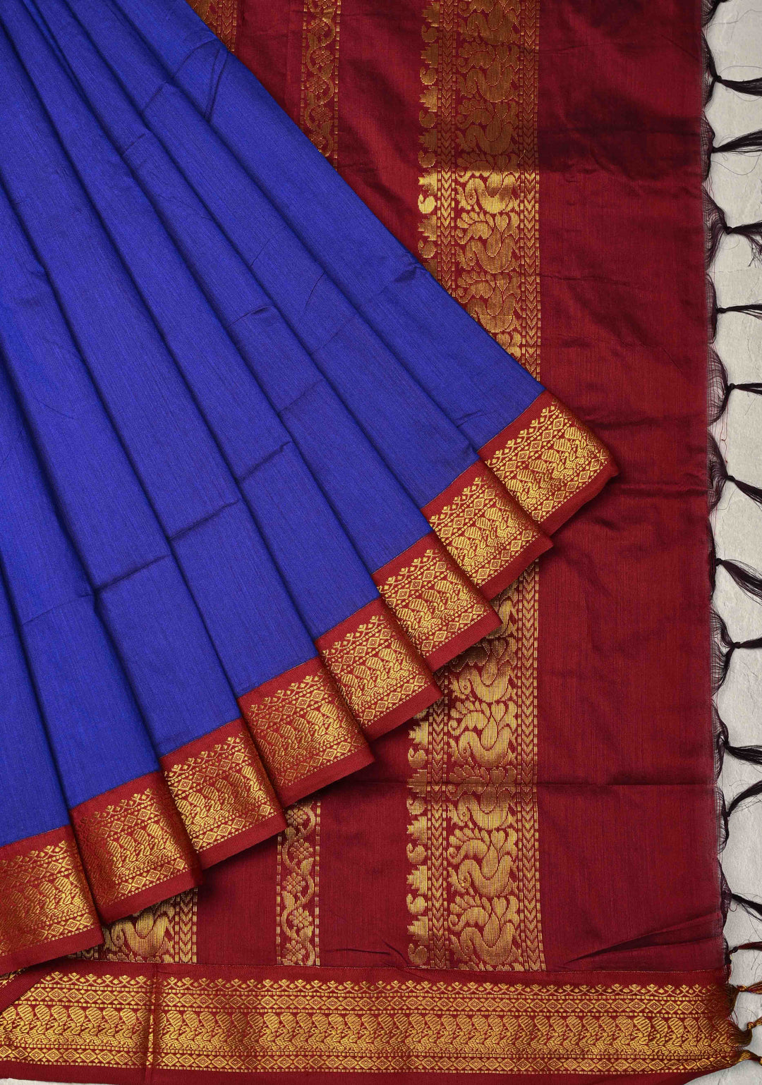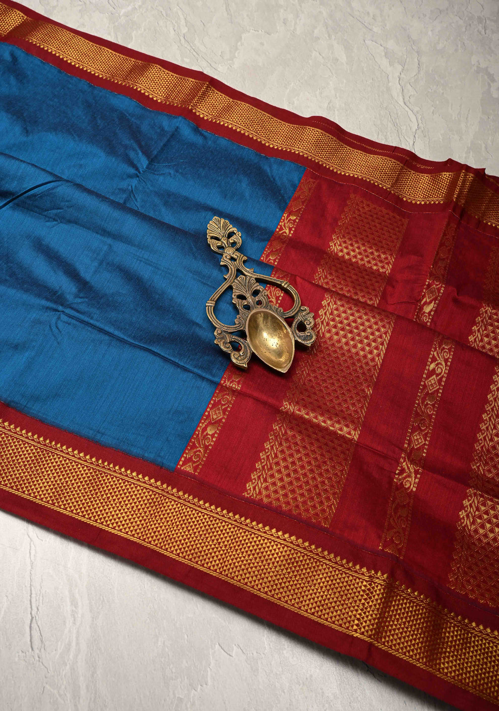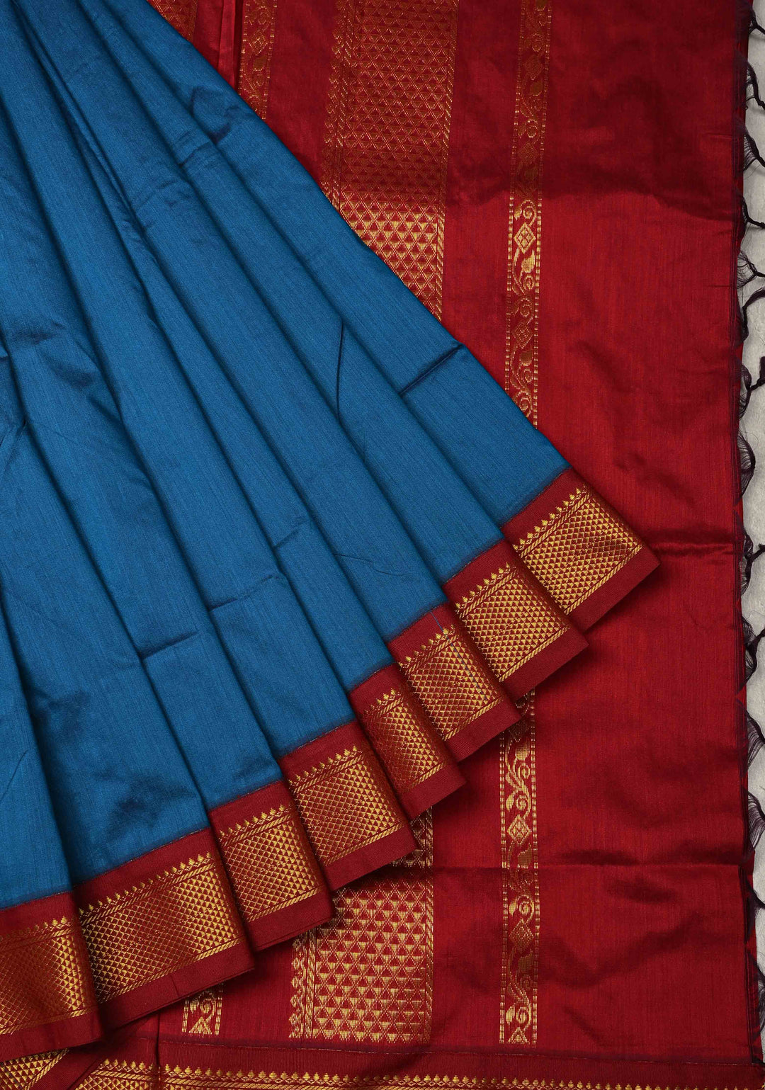 Peacock Blue Venkatagiri Cotton Silk Saree with Contrast Zari Border