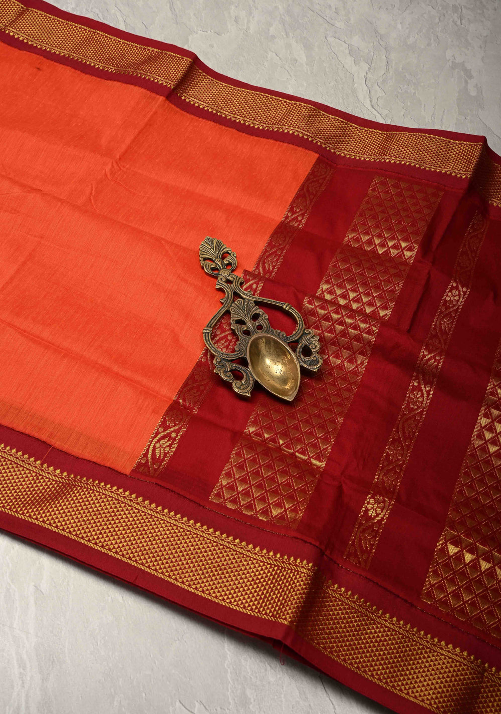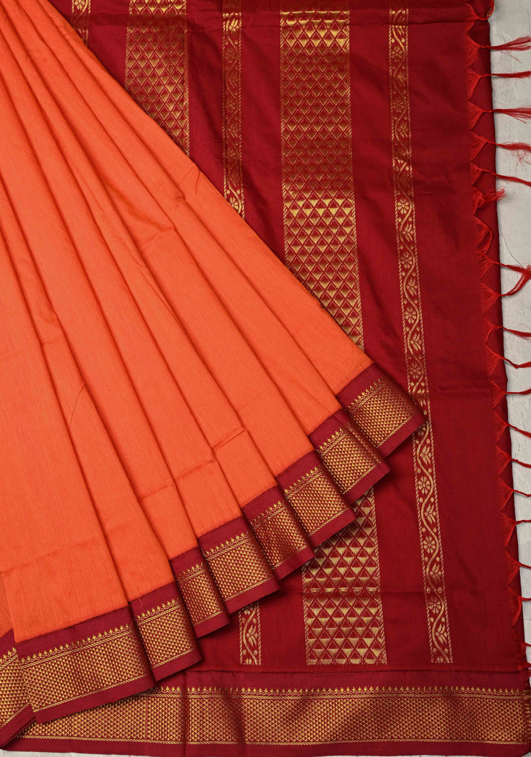 Kesari Orange Venkatagiri Cotton Silk Saree with Contrast Zari Border