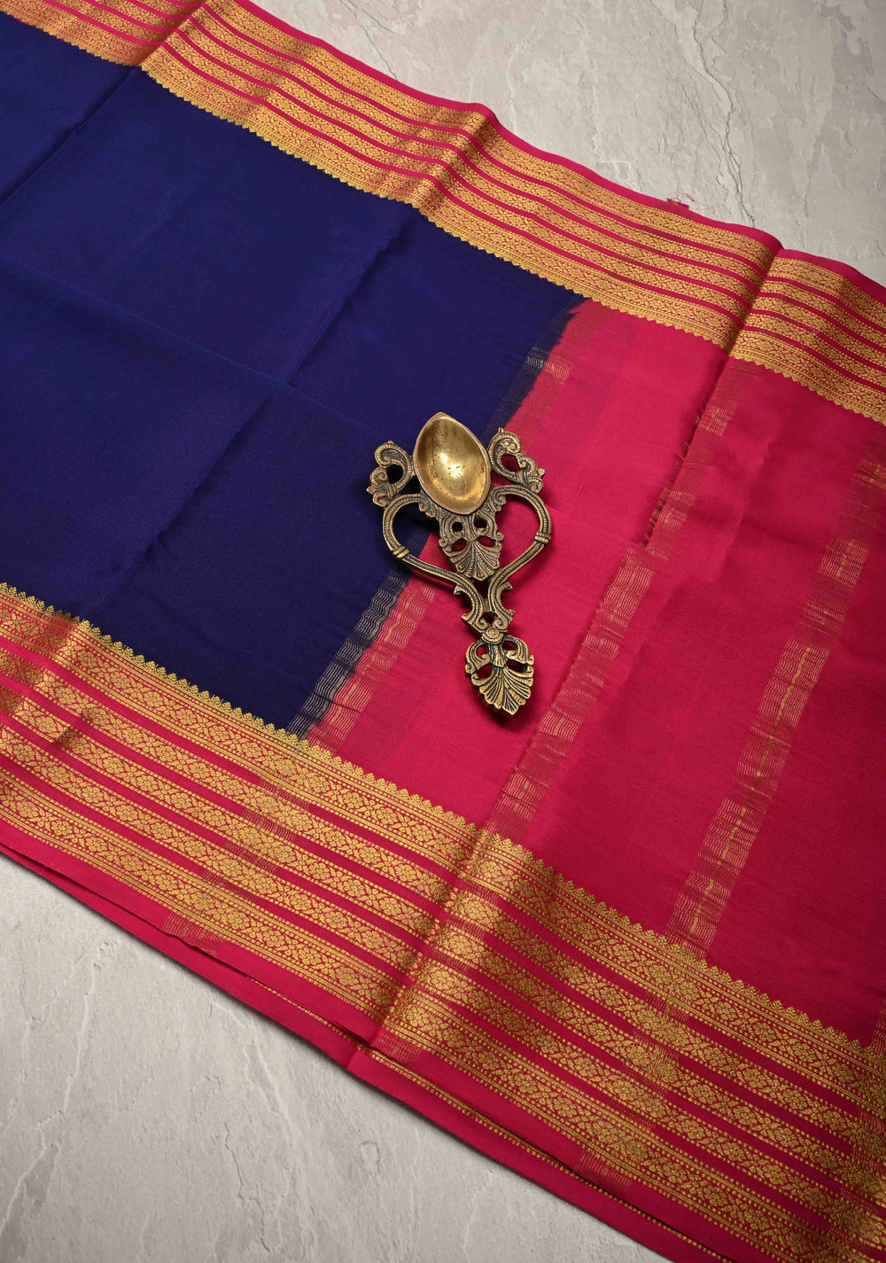 Fuchsia and Ink Blue Mysore Silk Saree with Half Border in KSIC Grade Thickness | SILK MARK CERTIFIED