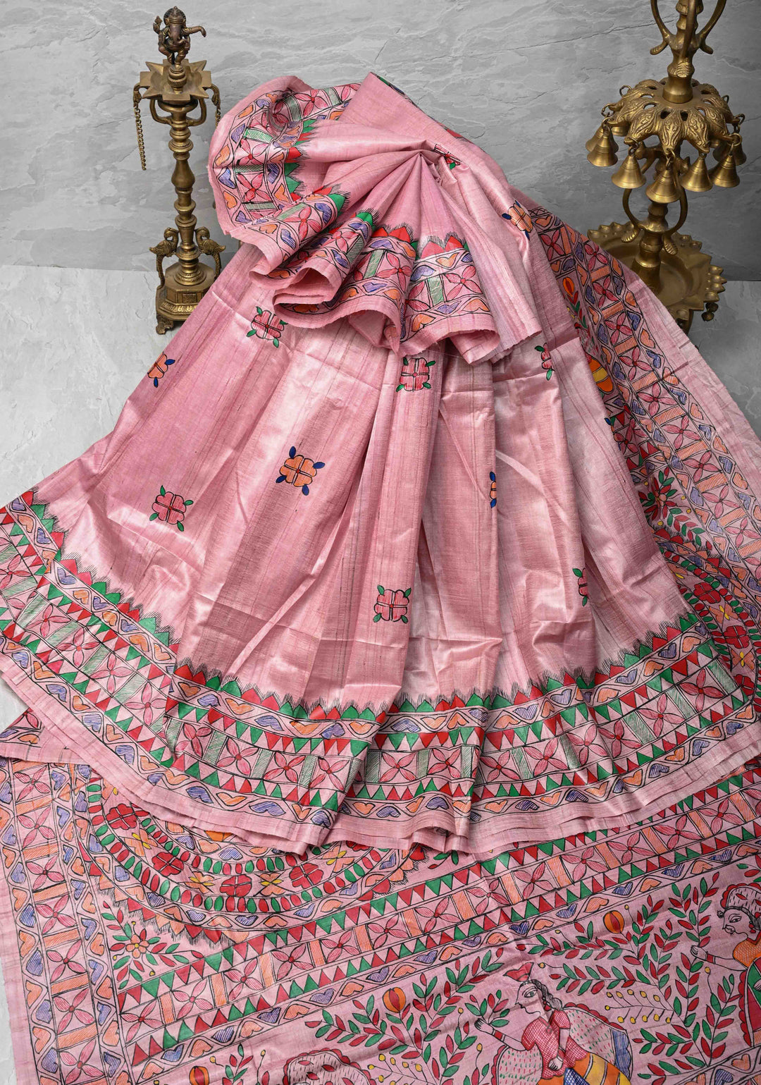 Kora Color Pure Handloom Tussar Silk Saree with Full Body Madhubani Hand-Painted | SILK MARK CERTIFIED