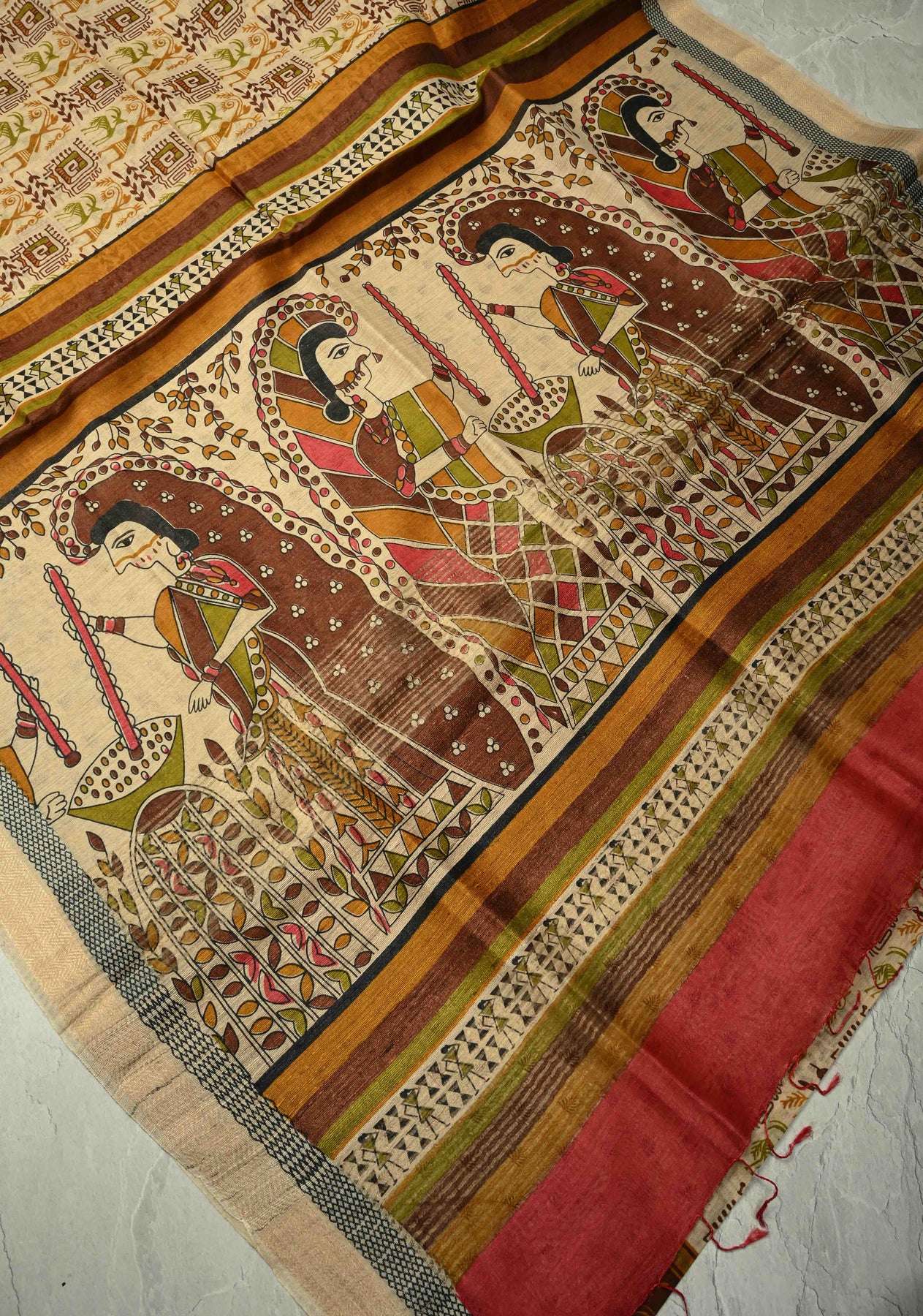 *Note: This is a handmade saree and there may be slight inconsistencies residual stencil marks. that are characteristic of this art form and are therefore not considered as defects.