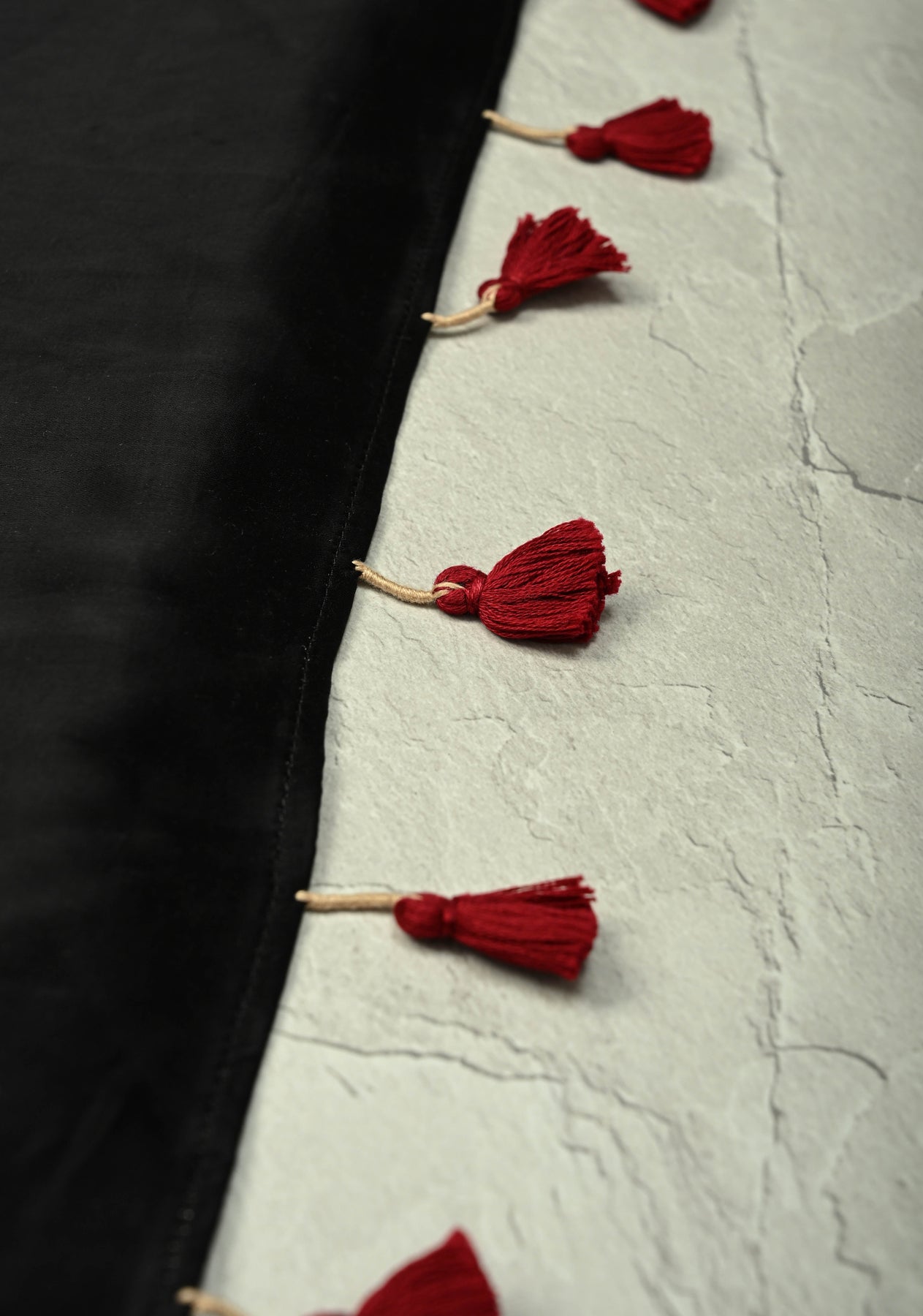 Make a striking statement with this Black-Blue Hand Block Print Modal Silk Saree, featuring intricate Mirror work for subtle sparkle and elegance. Crafted from modal silk, this saree offers a soft, lightweight drape with a smooth, luxurious finish that combines comfort with sophistication.