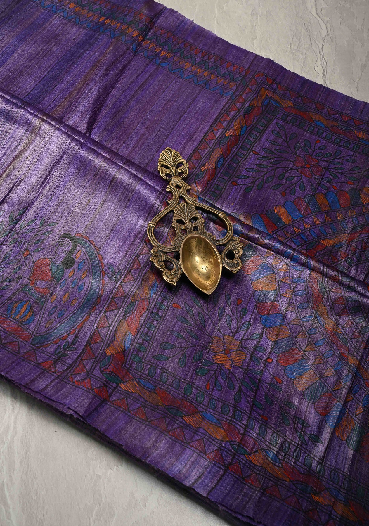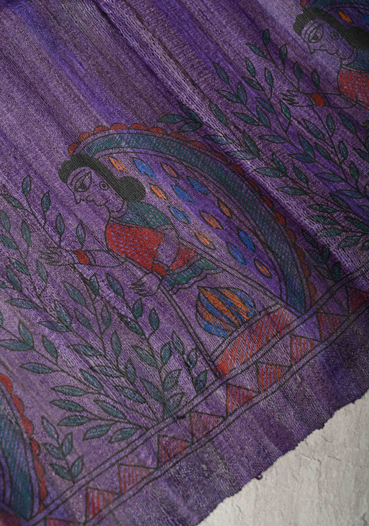 Brick Red Madhubani Hand Painted on Geecha Tussar Silk Saree With Contrast Muted Zari Border | SILK MARK CERTIFIED