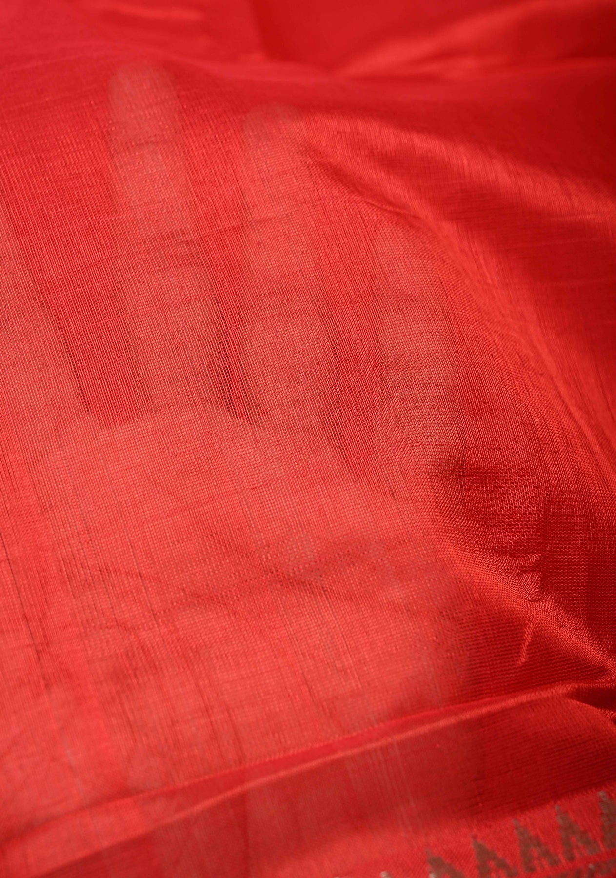 Vibrant and timeless, this Bright Red Handwoven Mangalagiri Silk Cotton Saree is a striking blend of tradition and comfort. Woven with care on traditional looms, the bold red body exudes festive energy and elegance. The saree is finished with a wide silver zari border, adding a graceful shimmer that elevates its classic appeal. Crafted from a breathable silk-cotton blend, this saree offers a soft drape and is perfect for weddings, religious ceremonies, or festive gatherings. A versatile piece for any celebration wardrobe.