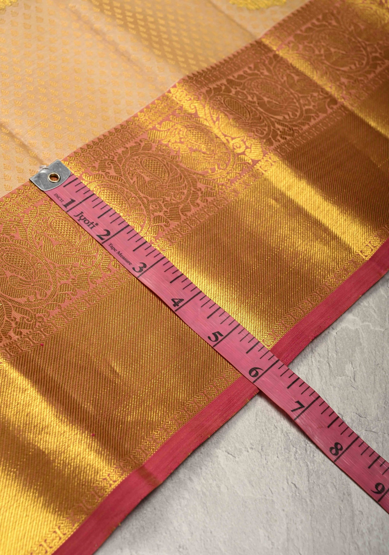 Cream Dual tone Self Brocade on Kanjivaram Pure Silk Saree with Zari Buttas and Zari Border | SILK MARK CERTIFIED