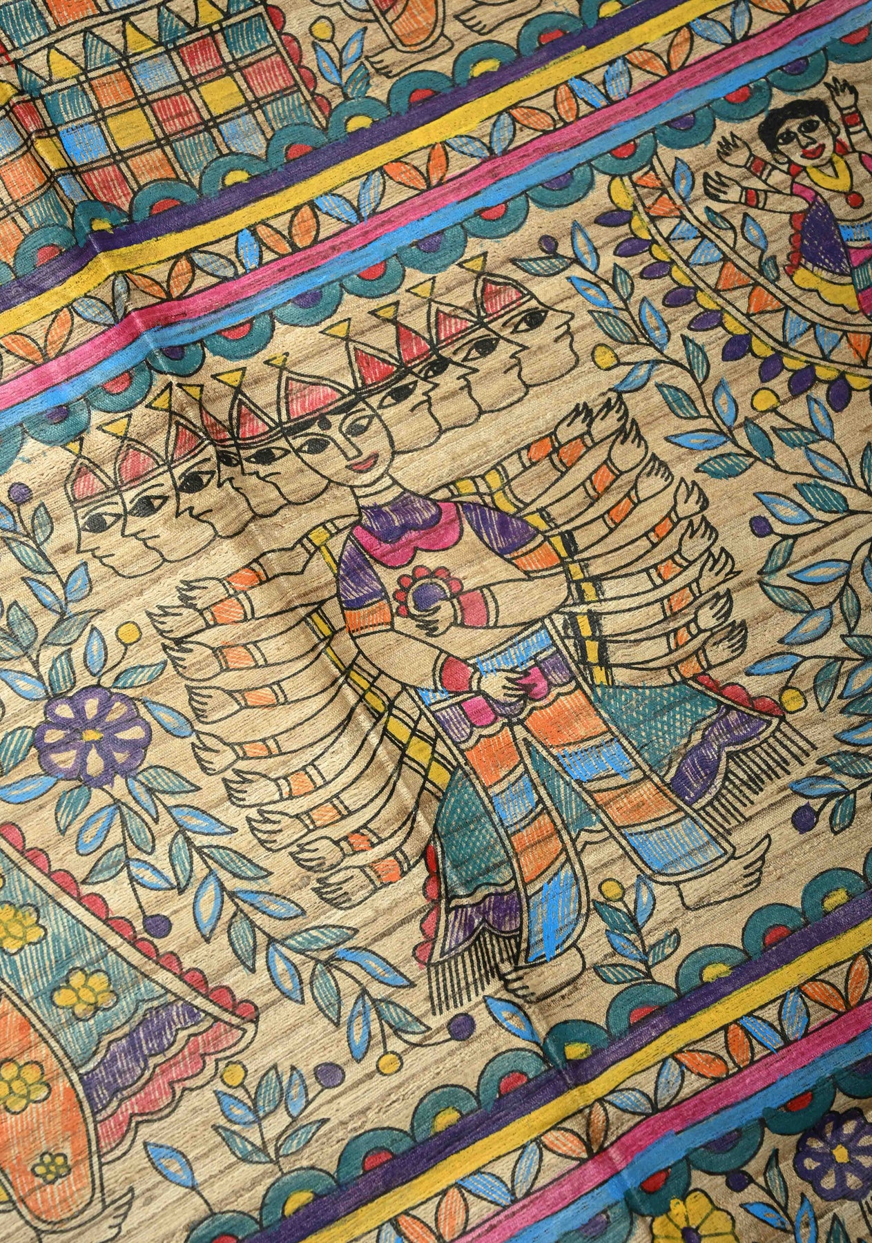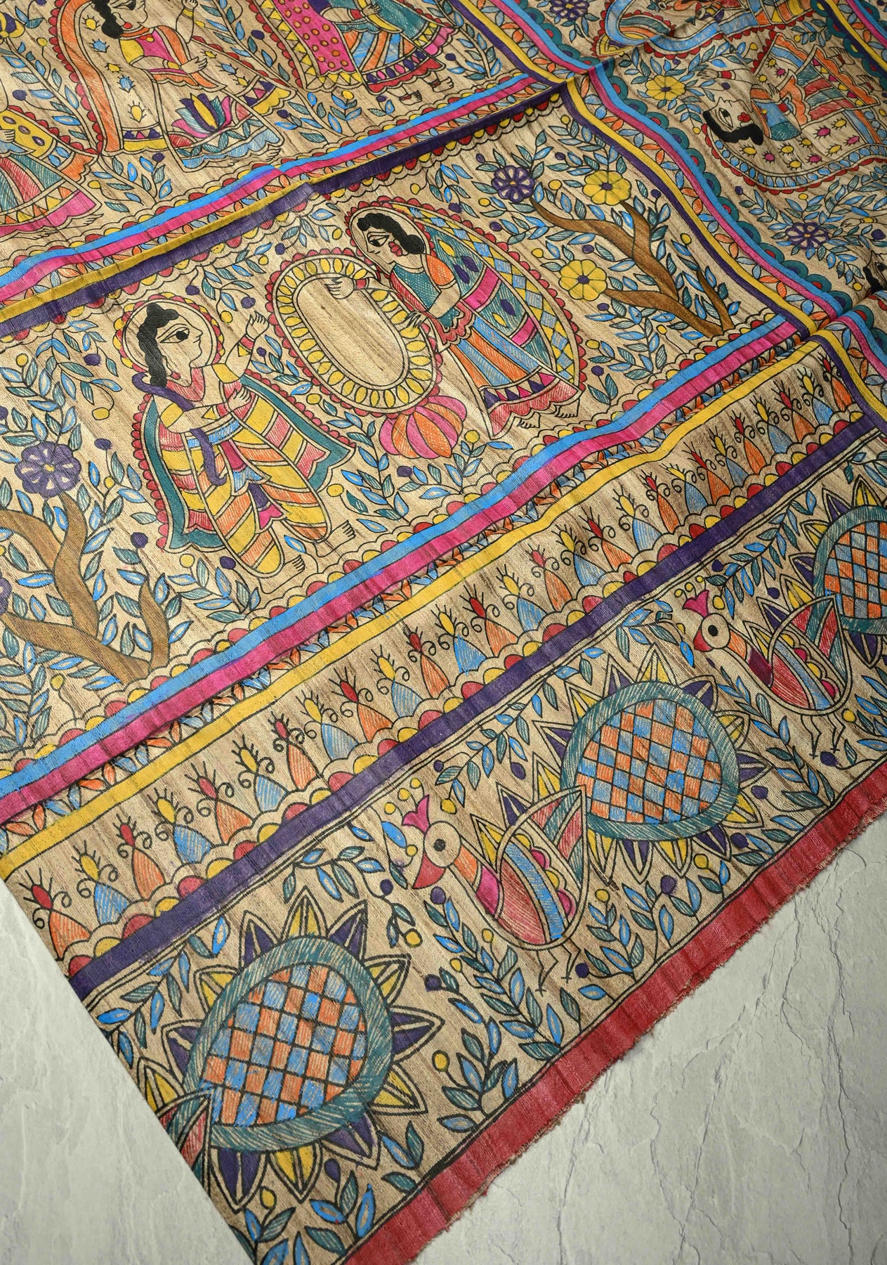 Embrace timeless artistry with this Kora-colored Pure Handloom Tussar Silk Saree, adorned with full-body Madhubani hand-painted motifs. The kora hue serves as a serene backdrop, highlighting the intricate, vibrant Madhubani artwork that covers the entire saree. Woven from pure tussar silk, it offers a lightweight and graceful drape, making it as comfortable as it is visually stunning. Perfect for weddings, cultural events, and festive occasions, this saree is a true celebration of traditional craftsmanship and artistic elegance.