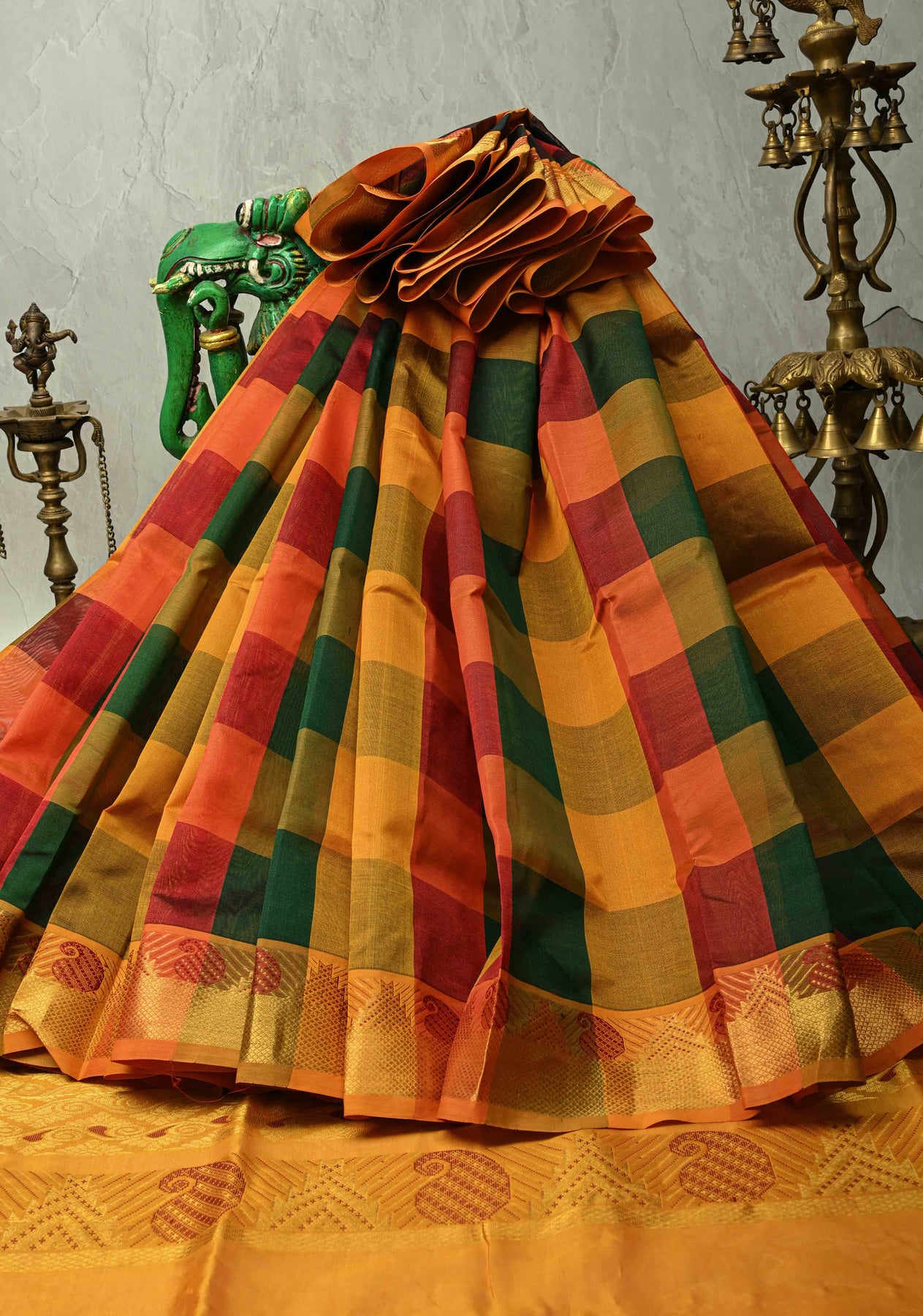 The saree is finished with a zari border, adding a subtle shimmer and highlighting the exquisite craftsmanship. Ideal for weddings, festivals, cultural events, and traditional celebrations, this saree combines heritage artistry with contemporary style.