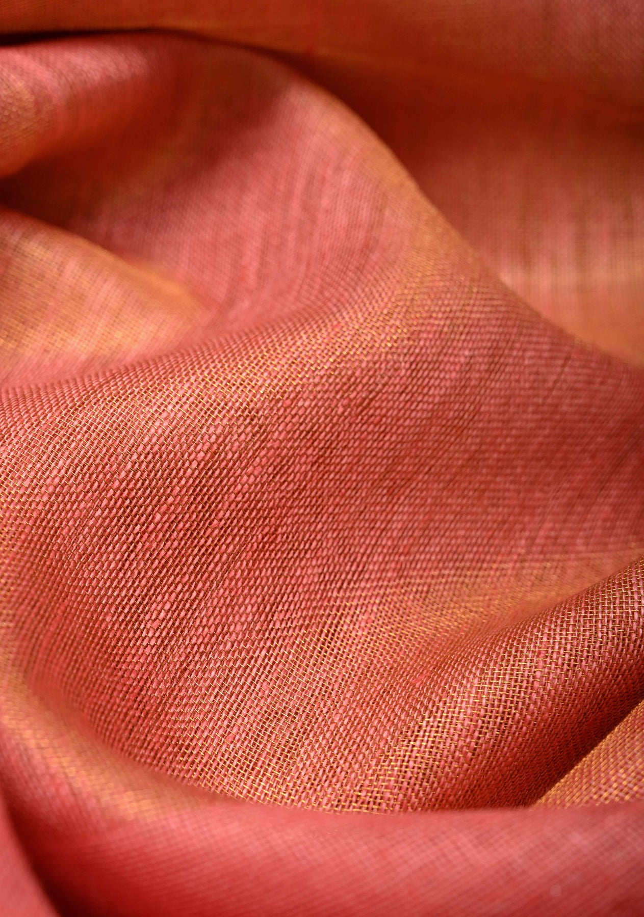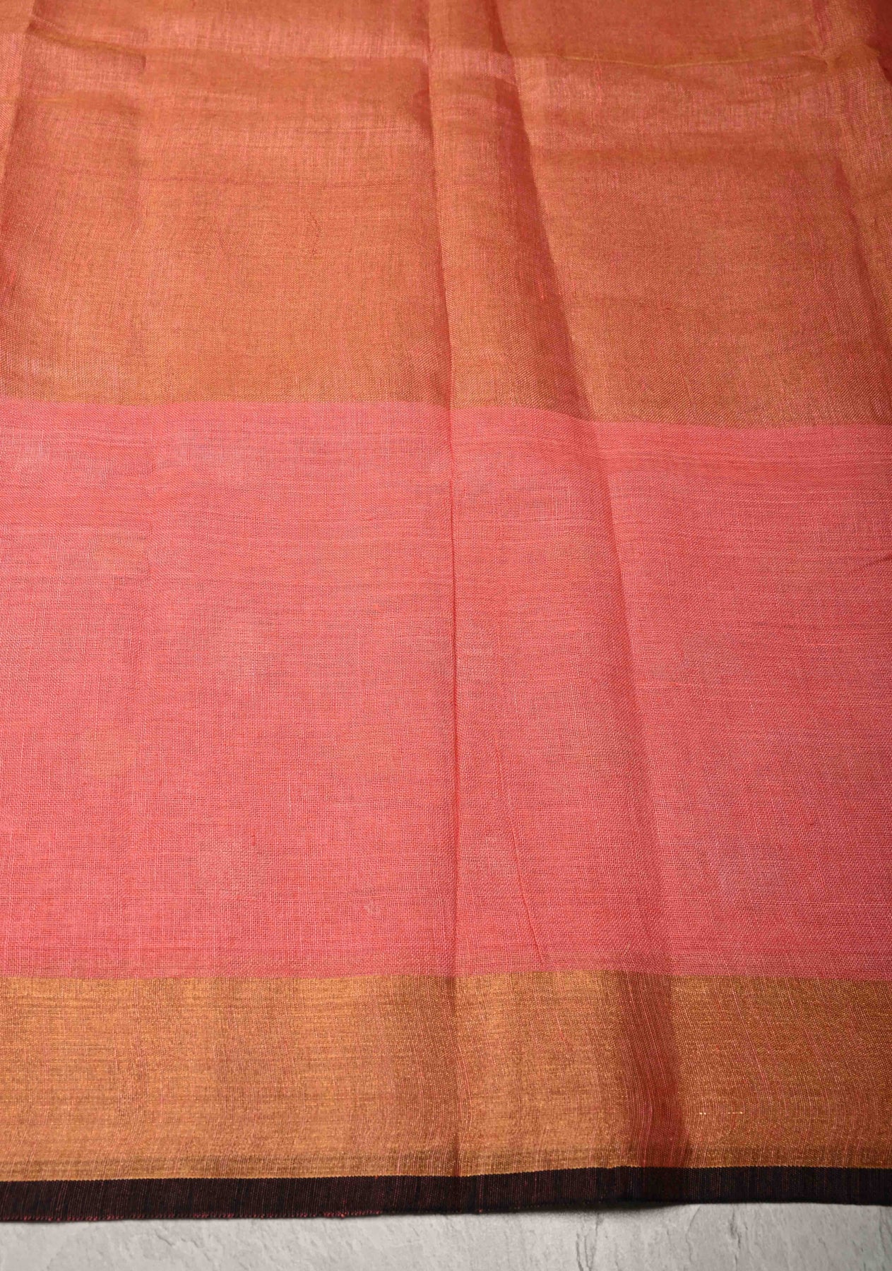 Experience timeless elegance with our Salmon Pink Tissue Body Linen Saree in a subtle Muted Antique Gold hue. This exquisite saree features a delicate tissue linen fabric that offers a soft, breathable feel, perfect for both festive occasions and formal gatherings. The standout detail is the Sona Rupa Polka Dots skirt border, adding a touch of traditional artistry and charm to the overall design. The harmonious blend of salmon pink and antique gold creates a sophisticated yet vibrant look, making this saree a versatile addition to your ethnic wardrobe. Pair it with statement jewelry and a classic blouse to complete your graceful ensemble.