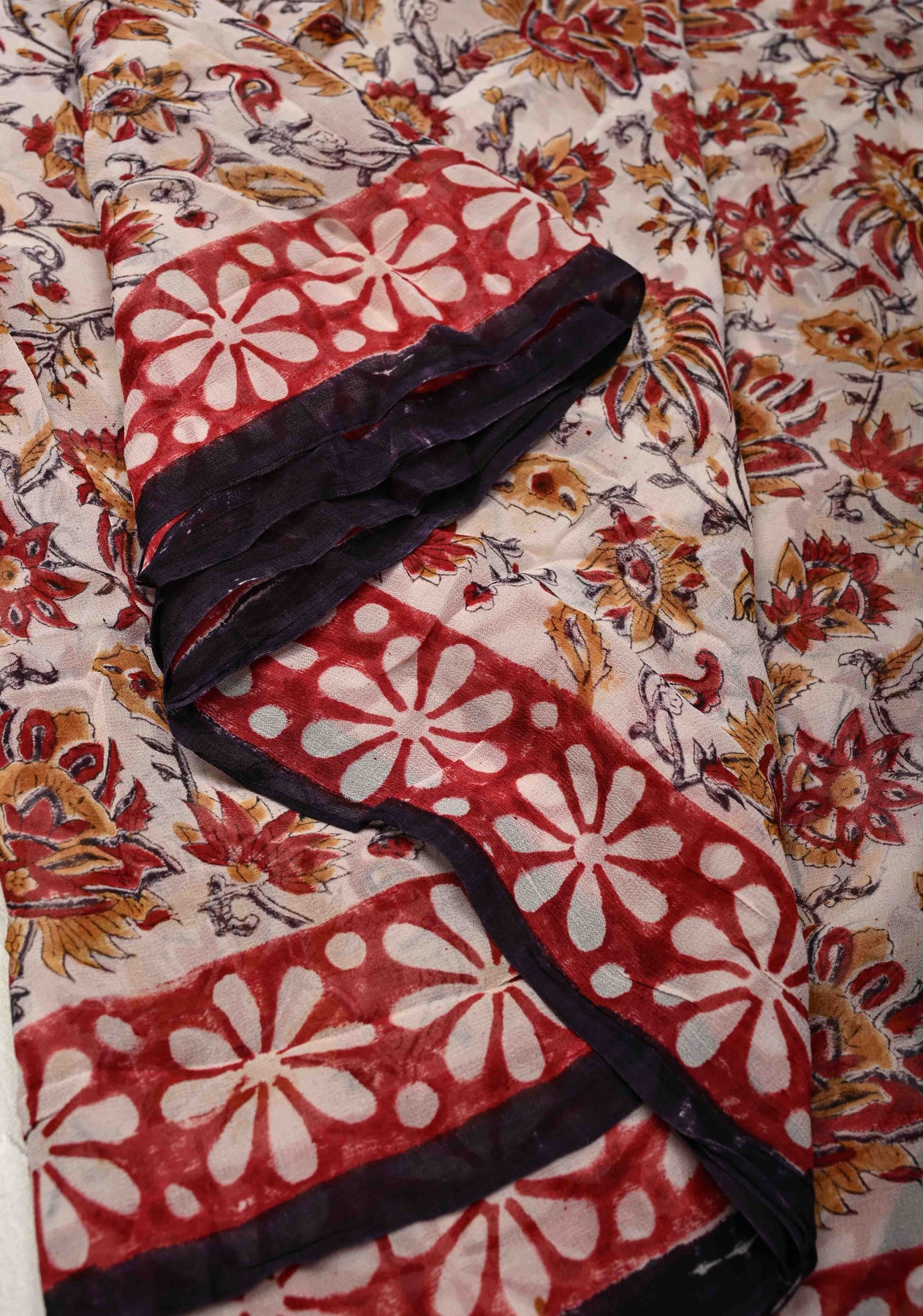 *Note: This is a handmade saree and there may be slight inconsistencies such as in it's weaving and print. These are characteristic of handmade products and attest to their originality and are not considered as defects.