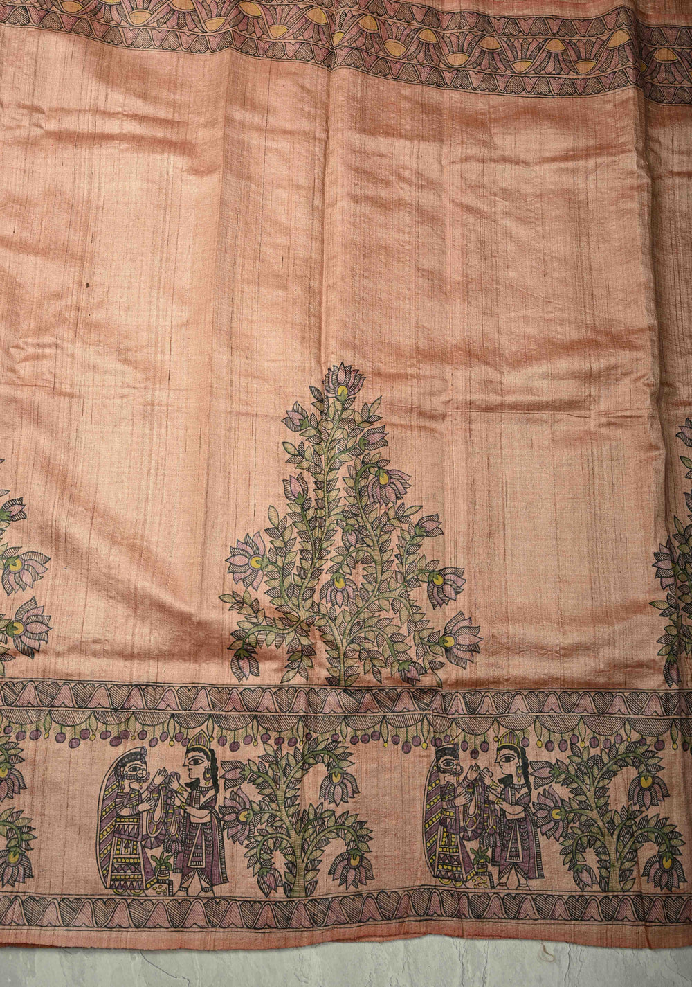 Pastel Pink Desi Tussar Madhubani Painting Saree | SILK MARK CERTIFIED