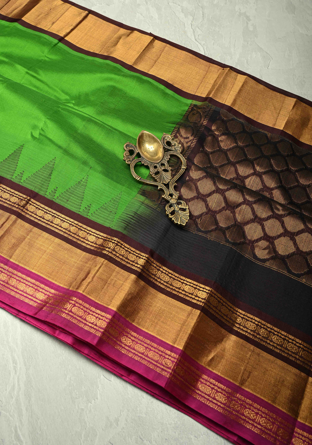 Bright Leaf Green Kanchi Silk Cotton Handloom Saree with Contrast Ganga Jamuna Tissue Border
