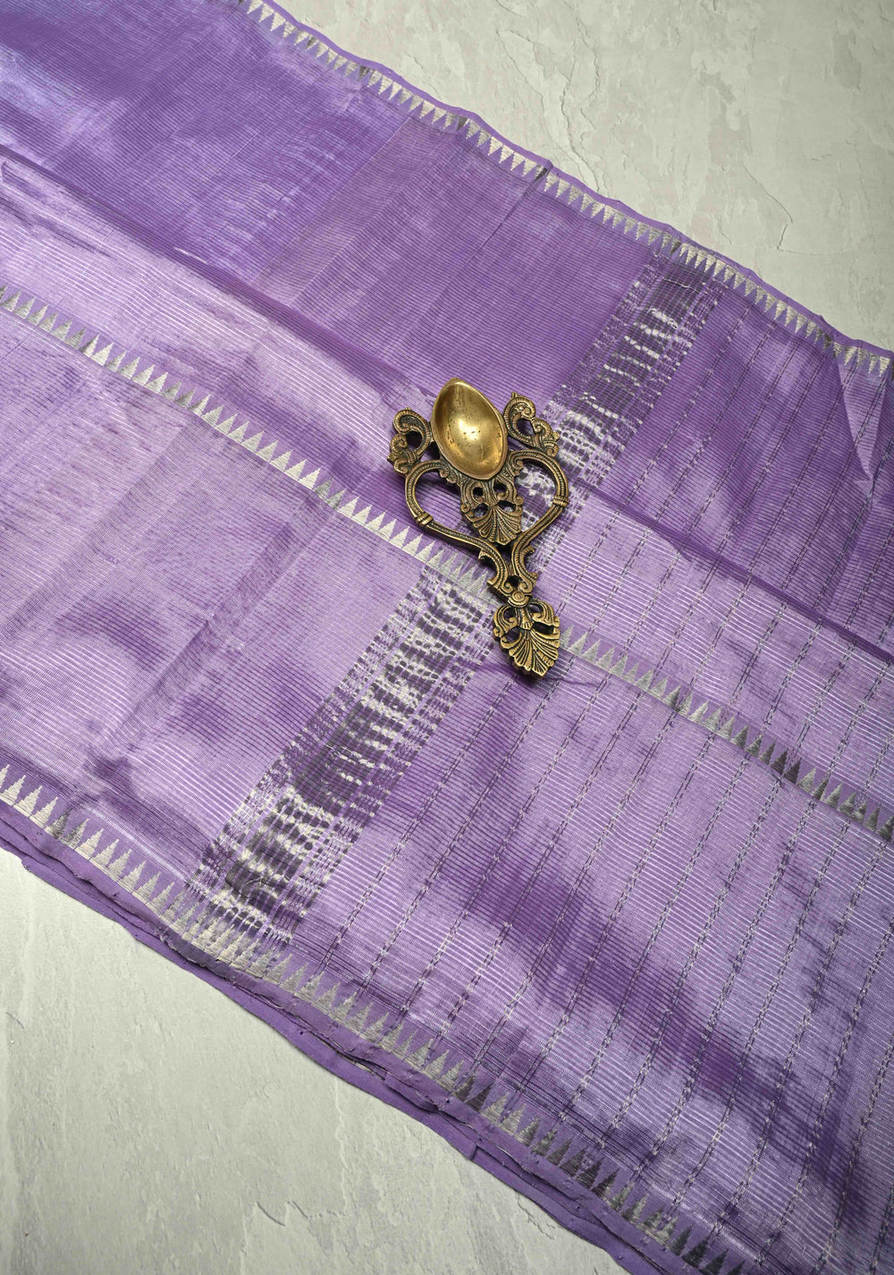 Purple Kota Doria Tissue Cotton Saree with Sona Rupa Zari Border