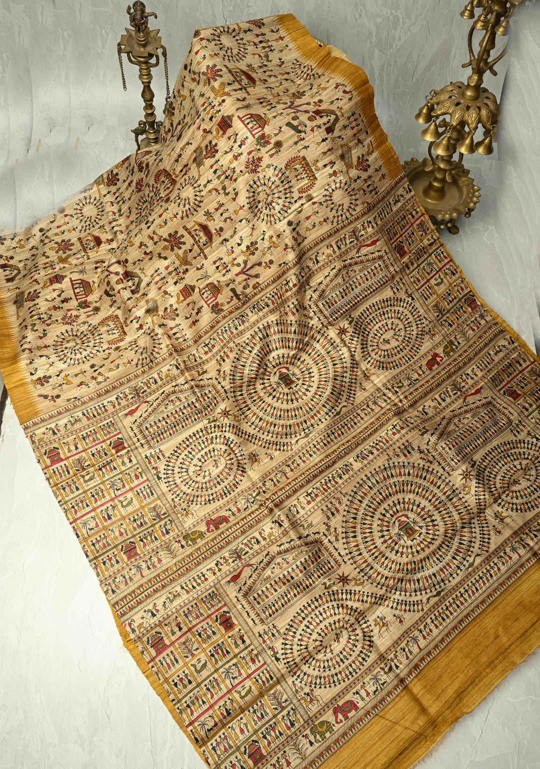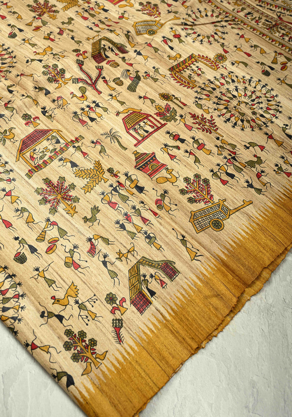 Natural Color Handloom Tussar PrintedKatiya Saree | SILK MARK CERTIFIED