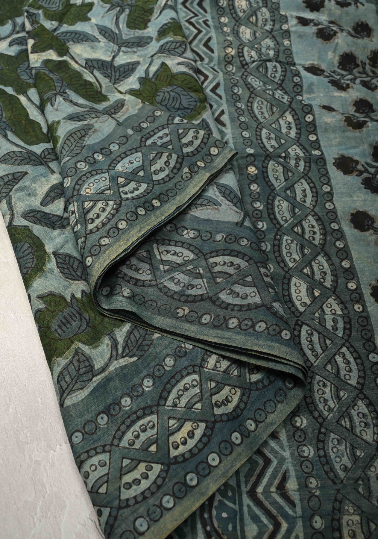 Dusty Blue Mul Cotton Saree with Bagru Print