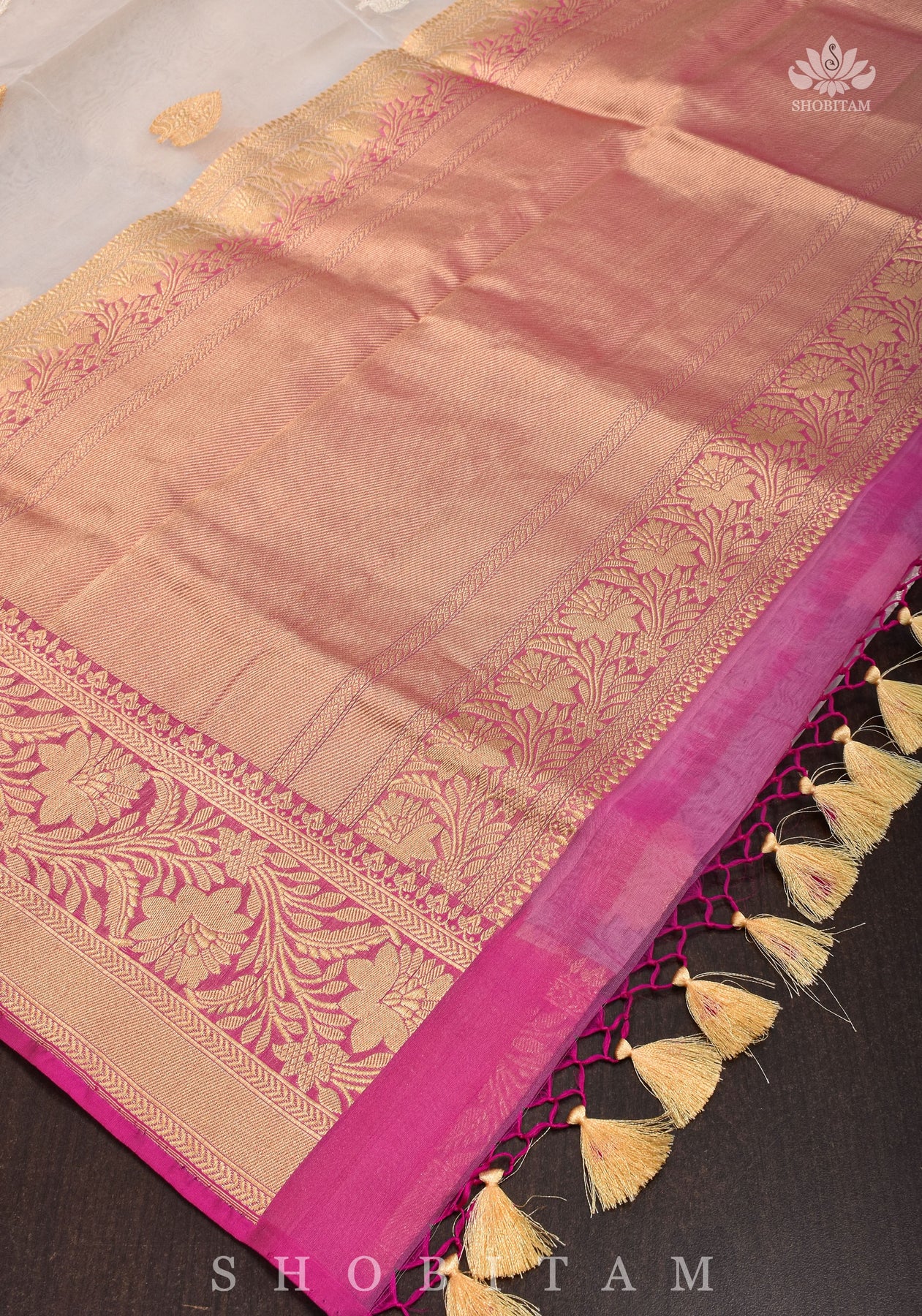 Pure Organza Banarasi Ivory with Ganga Jamuna borders and Sona Rupa Zari | SILK MARK CERTIFIED