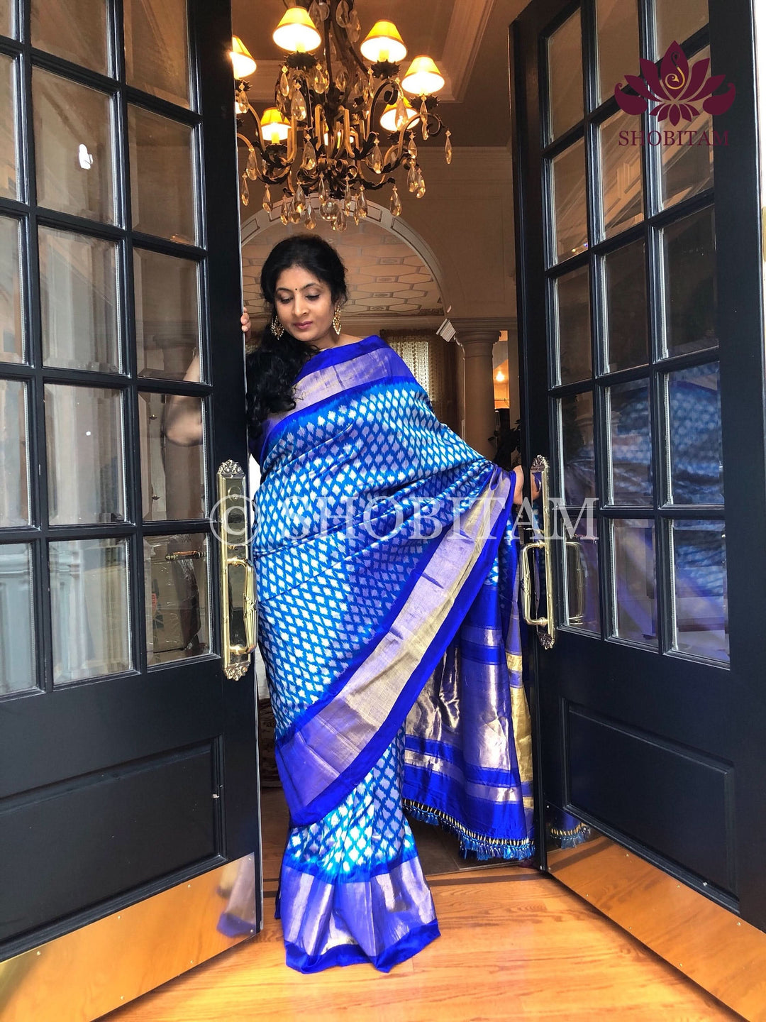 Shades of Blue - Ikkat Pochampally Pure Silk Saree | Silk Mark Certified