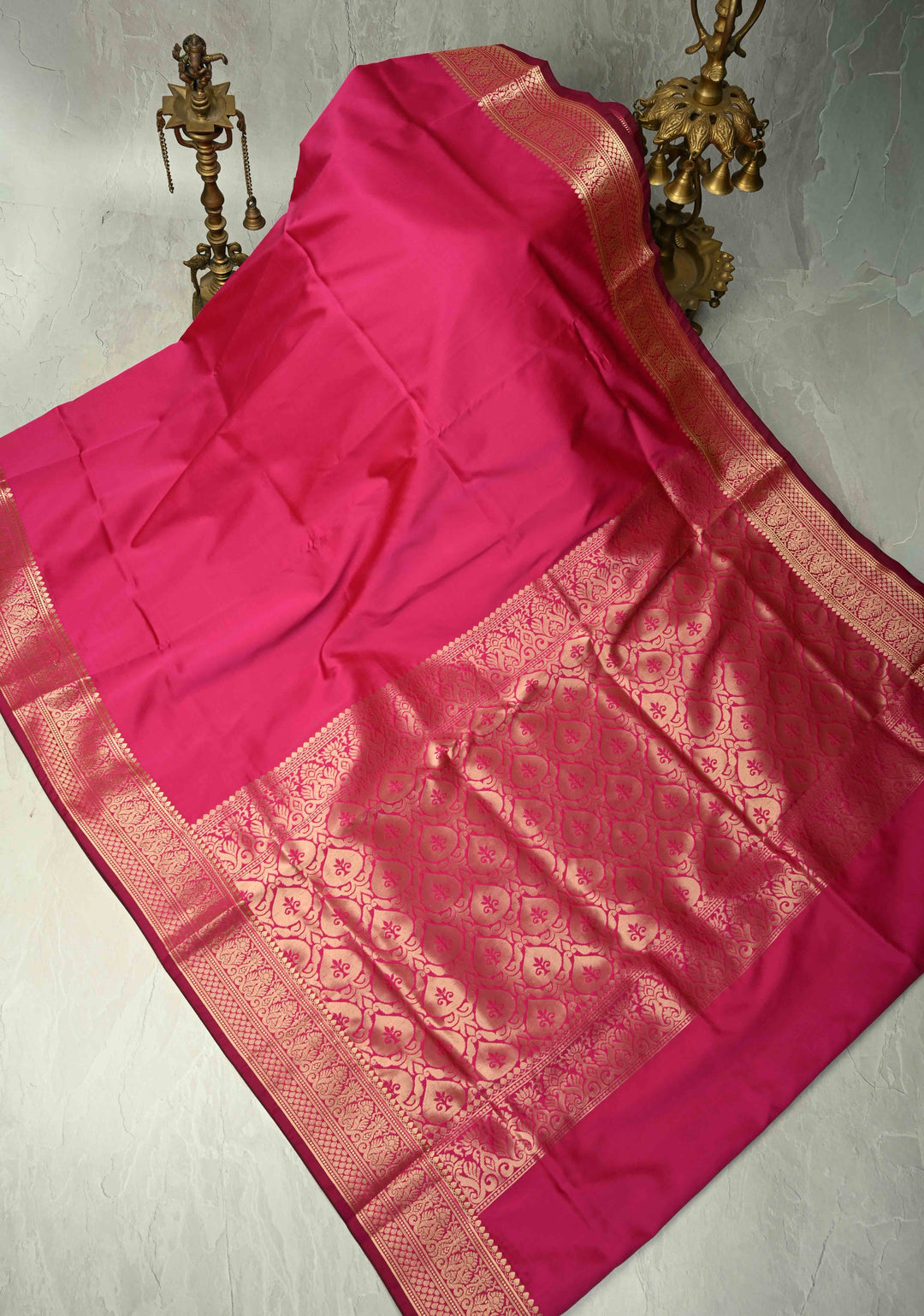 Deep Pink Semi Silk Saree with Chunri Buttis and Minimal Zari Border