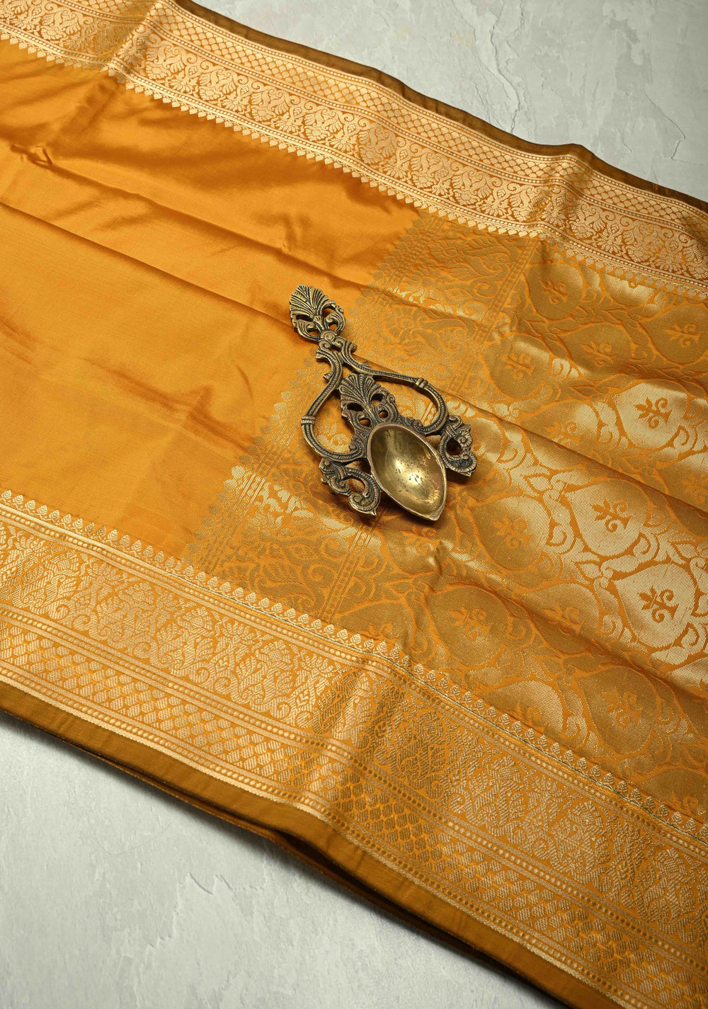 Frost Mustard Yellow Semi Silk Saree with Zari Border