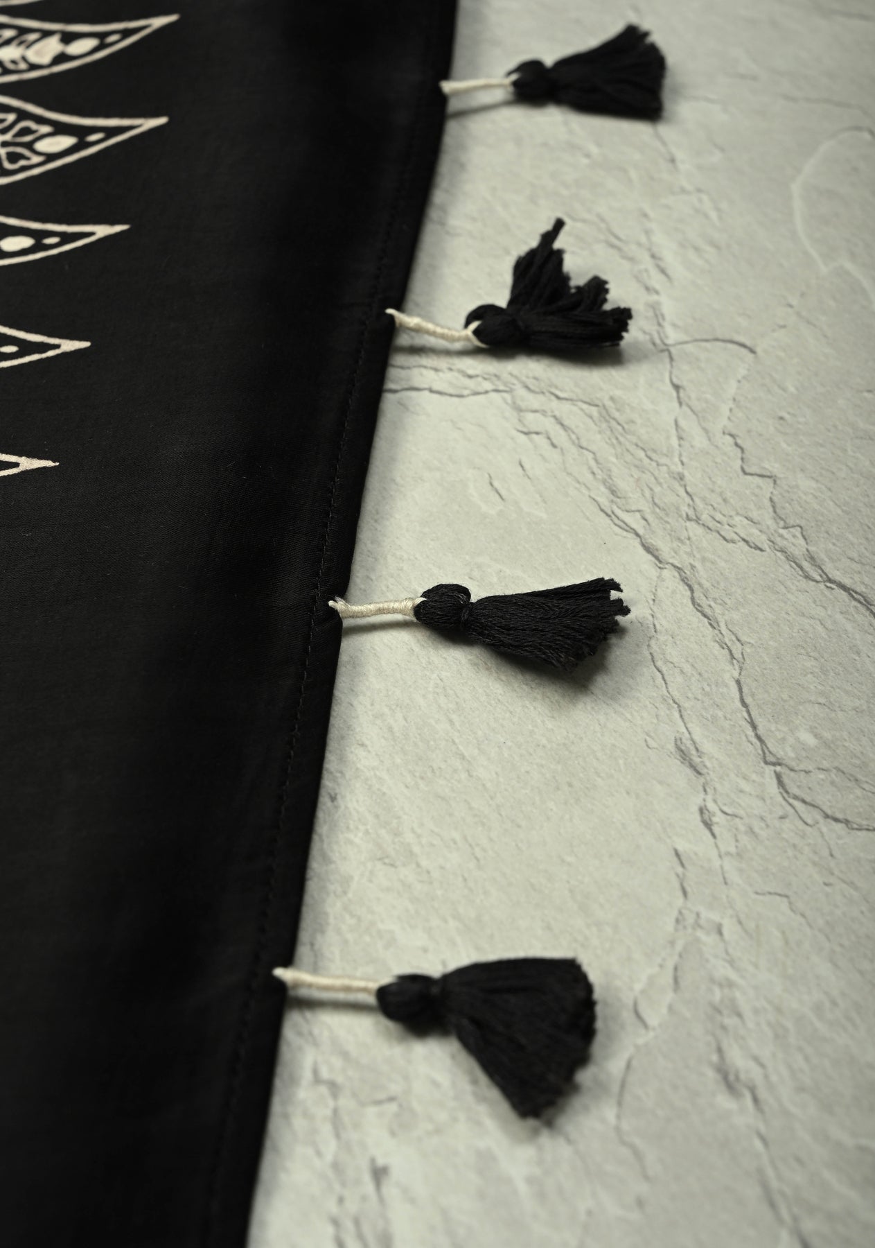 Immerse yourself in timeless tradition with this Black Modal Silk Saree, adorned with exquisite Ajrakh hand block prints a centuries-old craft known for its intricate geometric and floral motifs, deep natural hues, and labor-intensive process.