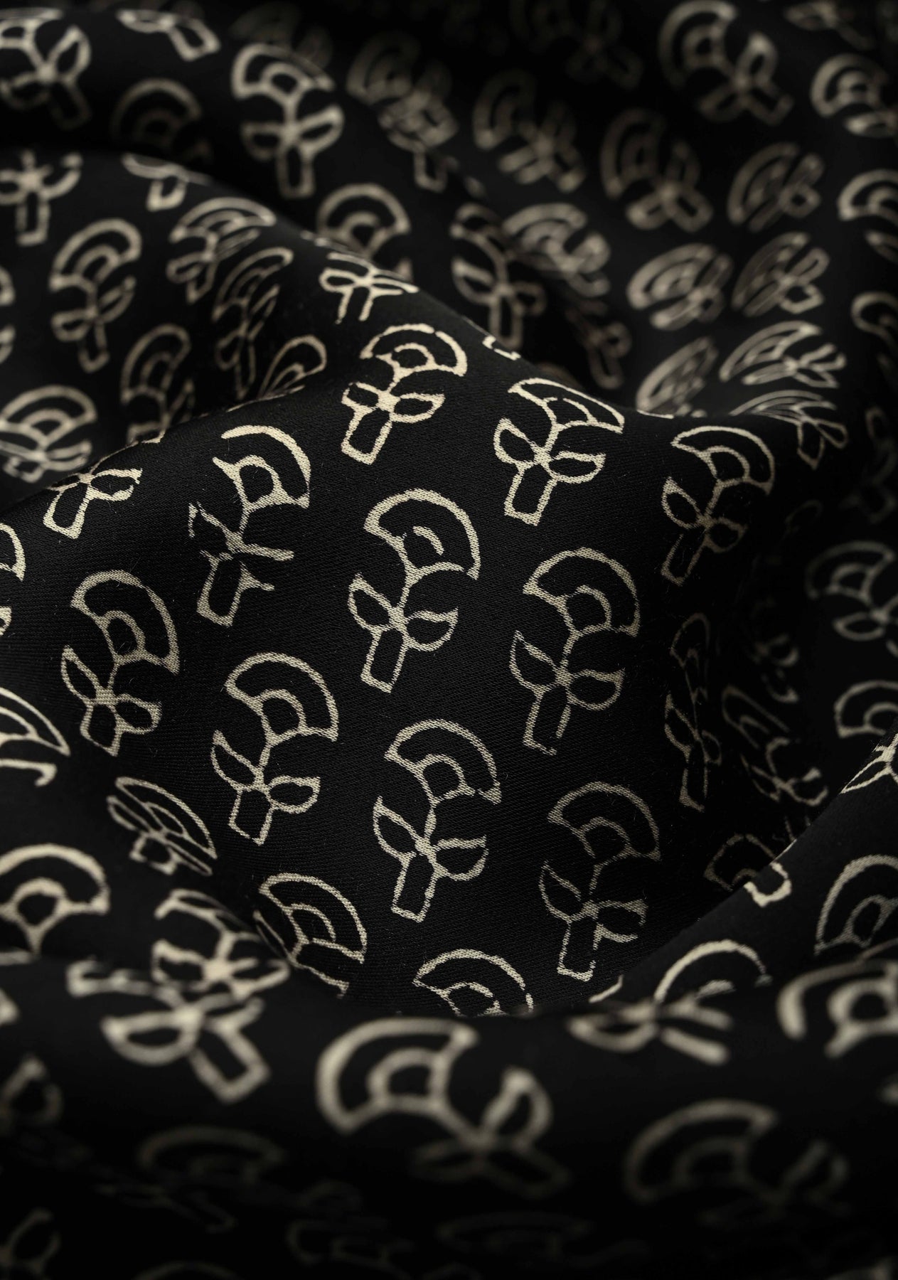 Made from Modal Silk, the fabric offers a perfect blend of natural sheen, breathability, and fluid drape. It's soft on the skin, eco-friendly, and ideal for long wear, making it both luxurious and sustainable. The Ajrakh printing technique is a multi-step resist-dye process practiced by artisans in Kutch, Gujarat. Known for its rich cultural symbolism and earthy color palette, Ajrakh printing uses natural dyes like indigo, madder root, iron acetate, and pomegranate rind.